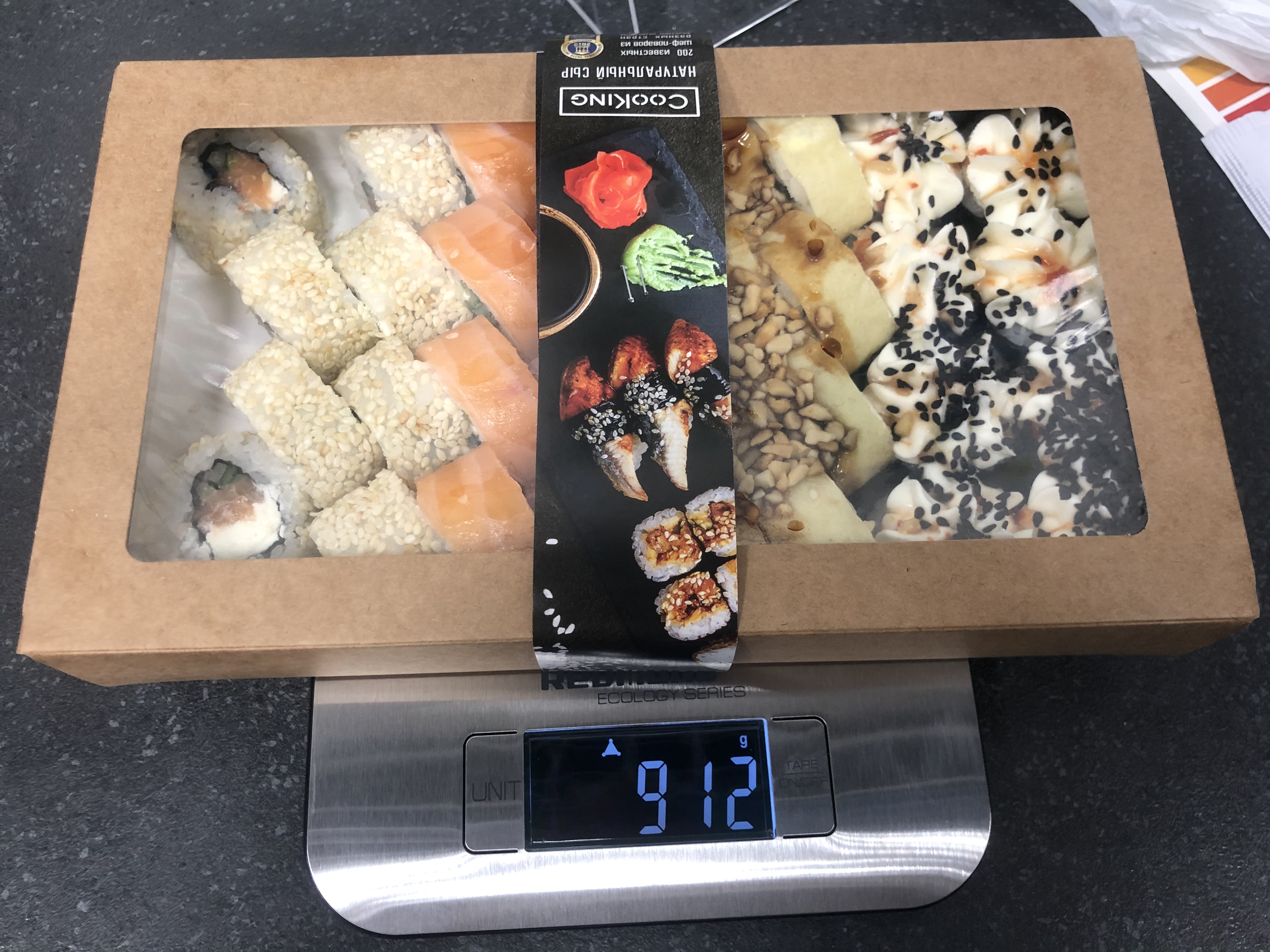 Брали сет Этна. Суши вкусные, но недовес оказался 80г (8%). Так что впечатления скомканные