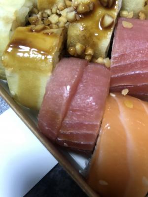 И знаете что.... этот ролл приехал го-ря-чий 🔥🔥🔥 Он был просто восхитителен! И все остальные суши 🍣 также были хороши, но мой фаворит это Фрай с тунцом.
