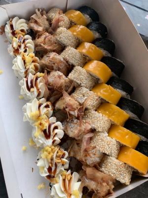 - Внимание! К предзаказу на 31.12 доступны: сет "Новогодний", "Мамины радости", "Макеба", "Ясахи", "Филадельфия", "Каприз", "Игра в кальмара", "Можно всё!", "Мама босс", "Палитра вкуса", "Муж купил", "Биг босс", "Мафия", "Манга", роллы Урамаки, все напитки и гарниры