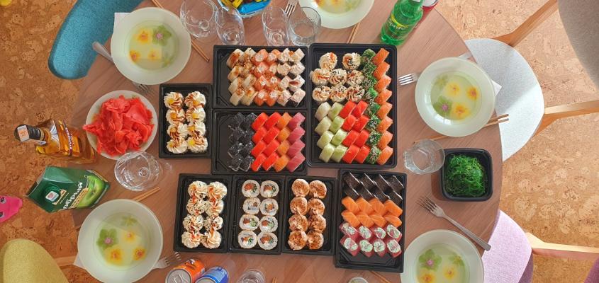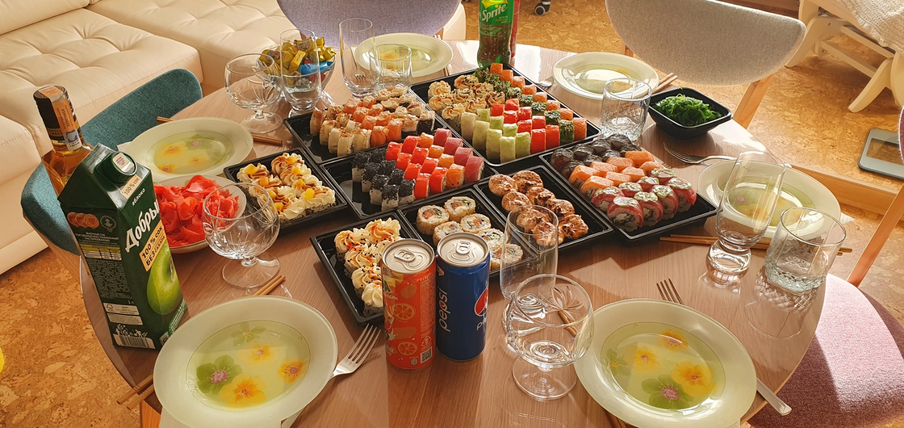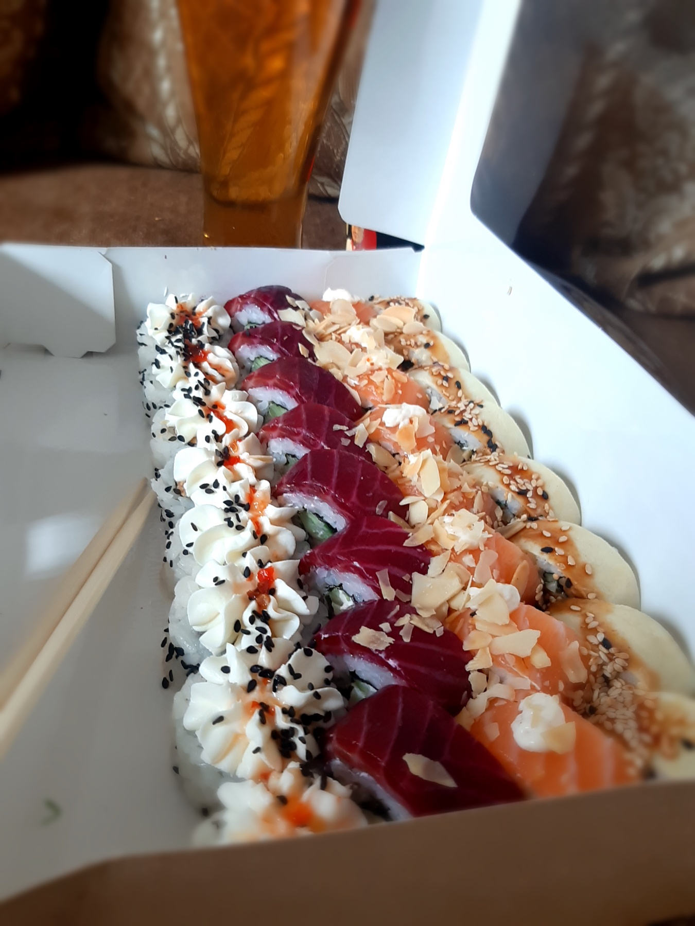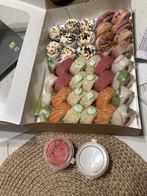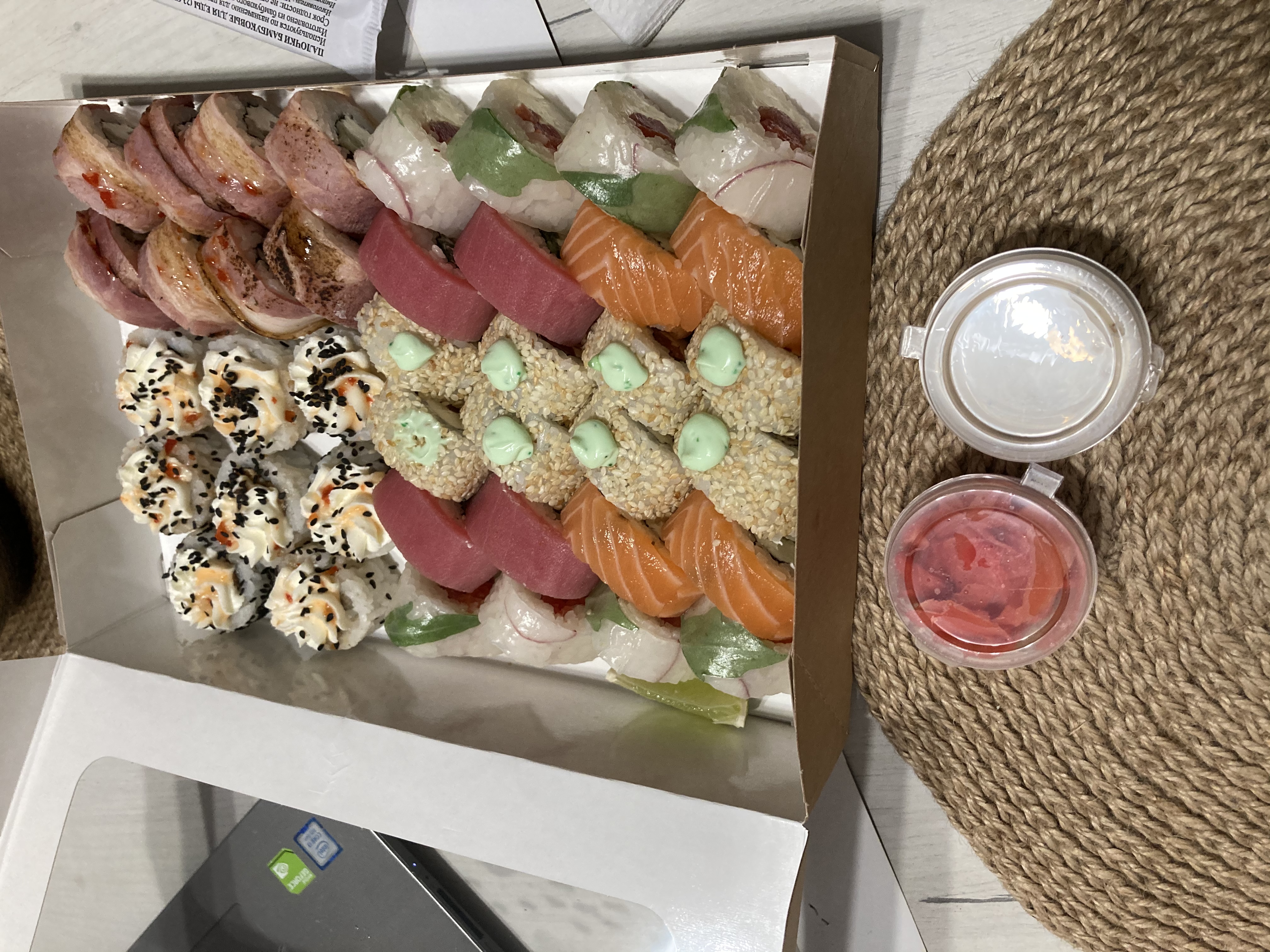 - Внимание! К предзаказу на 31.12 доступны: сет "Новогодний", "Мамины радости", "Макеба", "Ясахи", "Филадельфия", "Каприз", "Игра в кальмара", "Можно всё!", "Мама босс", "Палитра вкуса", "Муж купил", "Биг босс", "Мафия", "Манга", роллы Урамаки, все напитки и гарниры