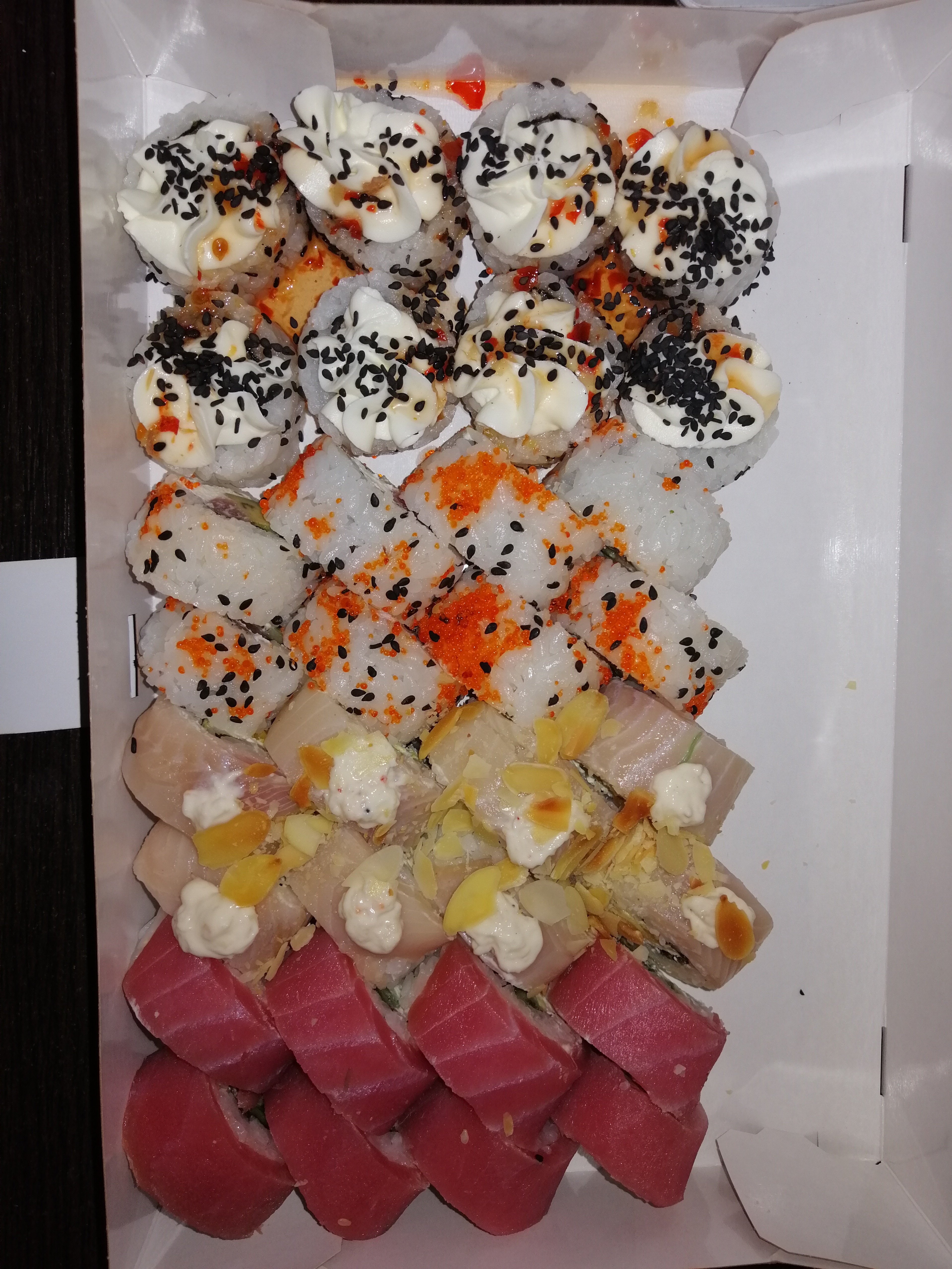 - Внимание! К предзаказу на 31.12 доступны: сет "Новогодний", "Мамины радости", "Макеба", "Ясахи", "Филадельфия", "Каприз", "Игра в кальмара", "Можно всё!", "Мама босс", "Палитра вкуса", "Муж купил", "Биг босс", "Мафия", "Манга", роллы Урамаки, все напитки и гарниры