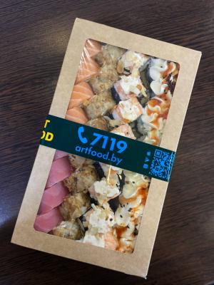 - Промокод дает право на скидку до 60% на суши-сеты от "ART FOOD"