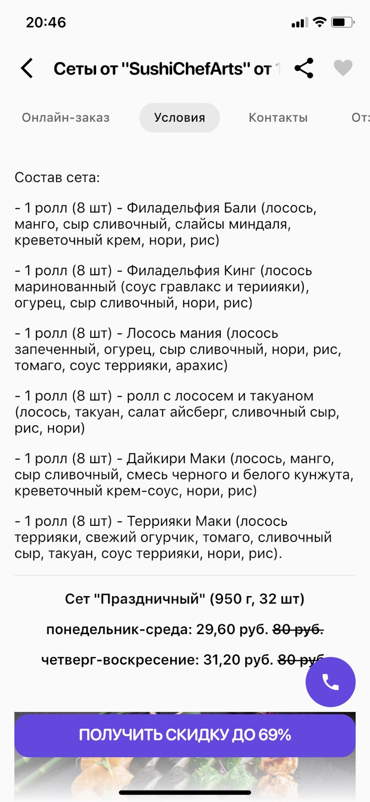 - суши-сеты: от 22 р. от 46 р.