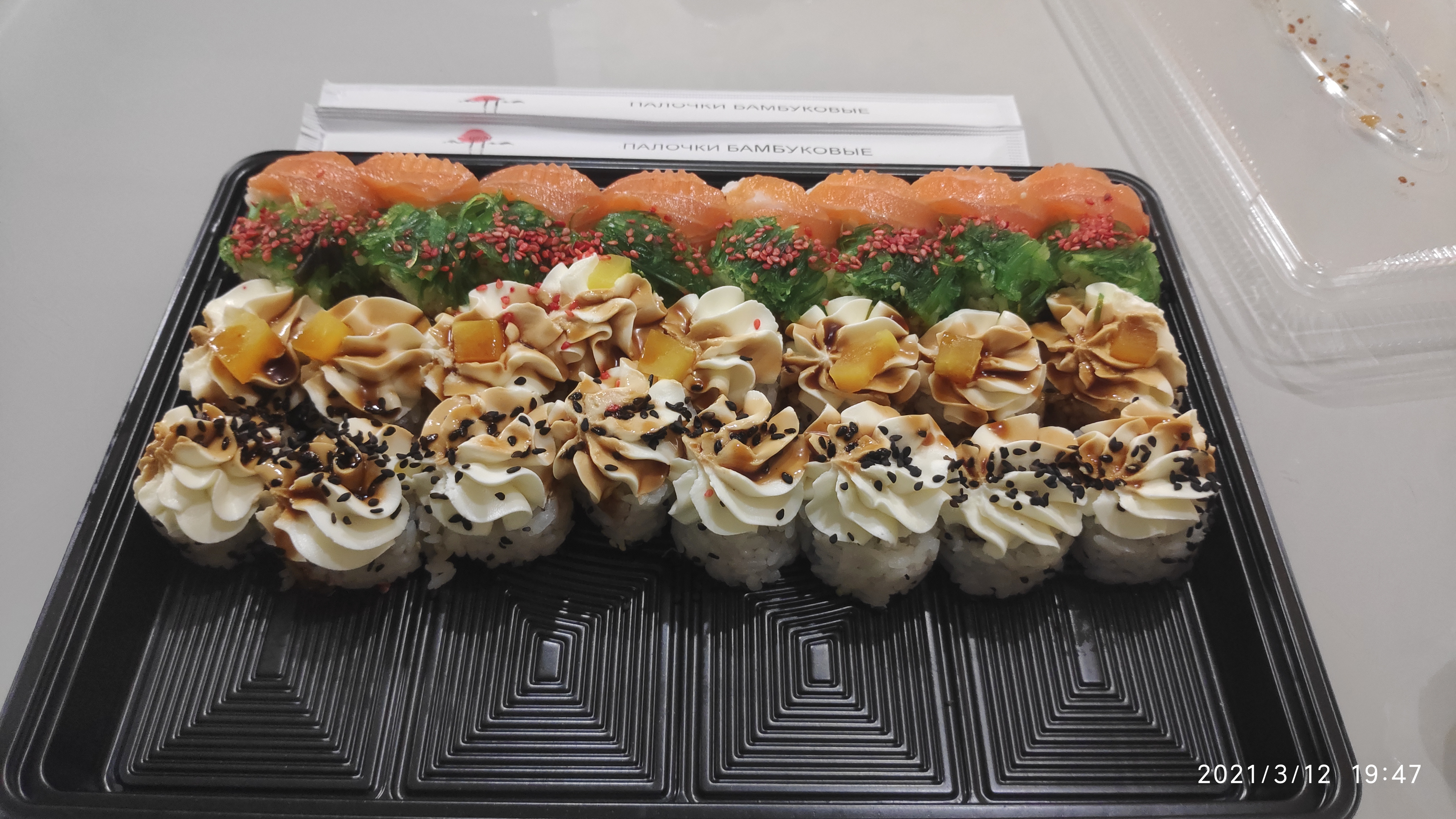 - На 1 суши-сет прилагается не более 4 комплектов палочек
