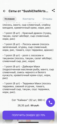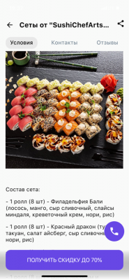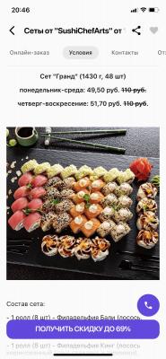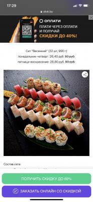 - Промокод дает право на скидку до 60% на суши-сеты от "ART FOOD"