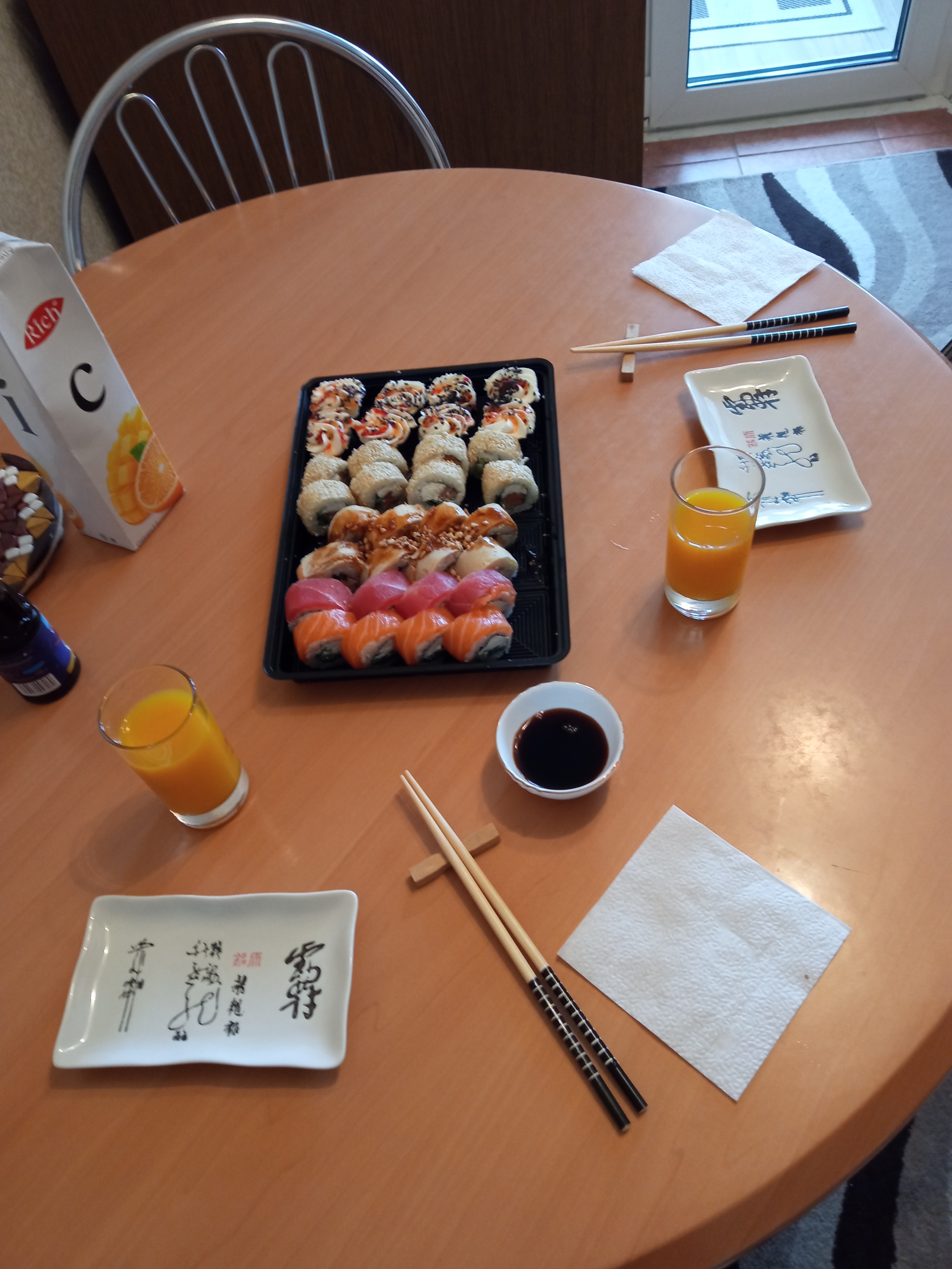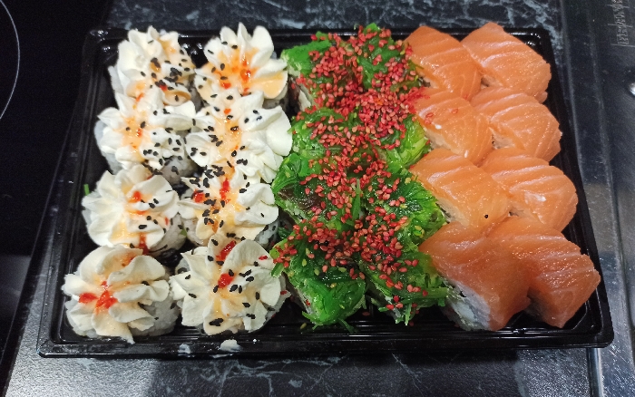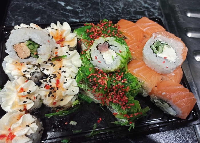 - Внимание! К предзаказу на 31.12 доступны: сет "Новогодний", "Мамины радости", "Макеба", "Ясахи", "Филадельфия", "Каприз", "Игра в кальмара", "Можно всё!", "Мама босс", "Палитра вкуса", "Муж купил", "Биг босс", "Мафия", "Манга", роллы Урамаки, все напитки и гарниры
