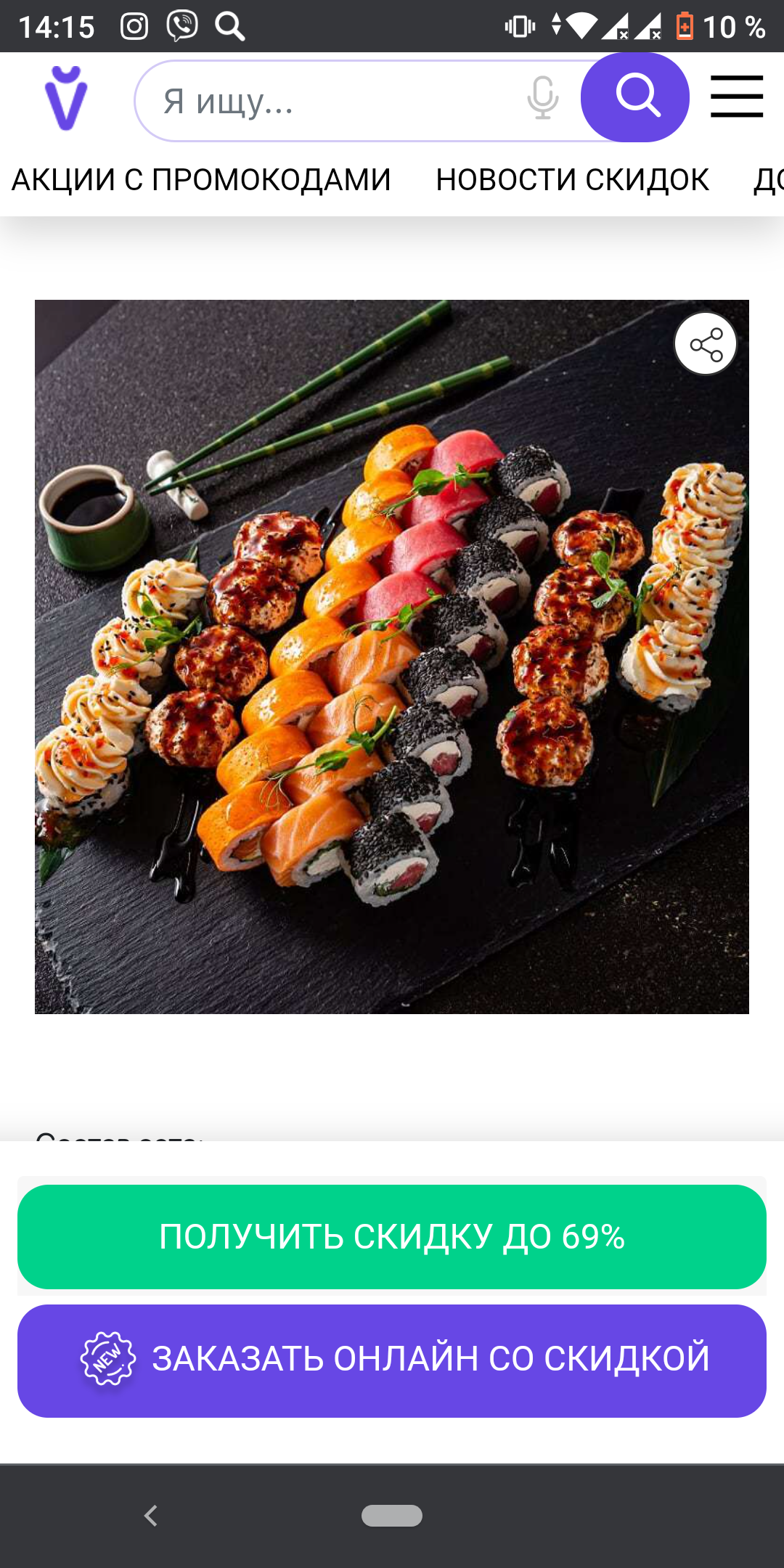 - Промокод дает право на скидку до 60% на суши-сеты от "ART FOOD"