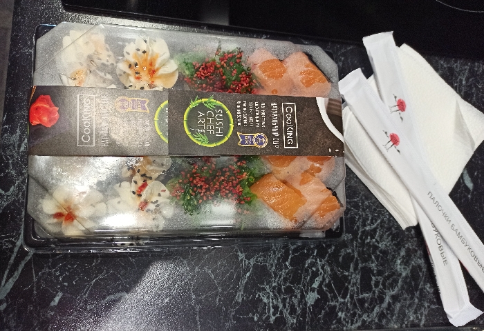 - На 1 суши-сет прилагается не более 4 комплектов палочек