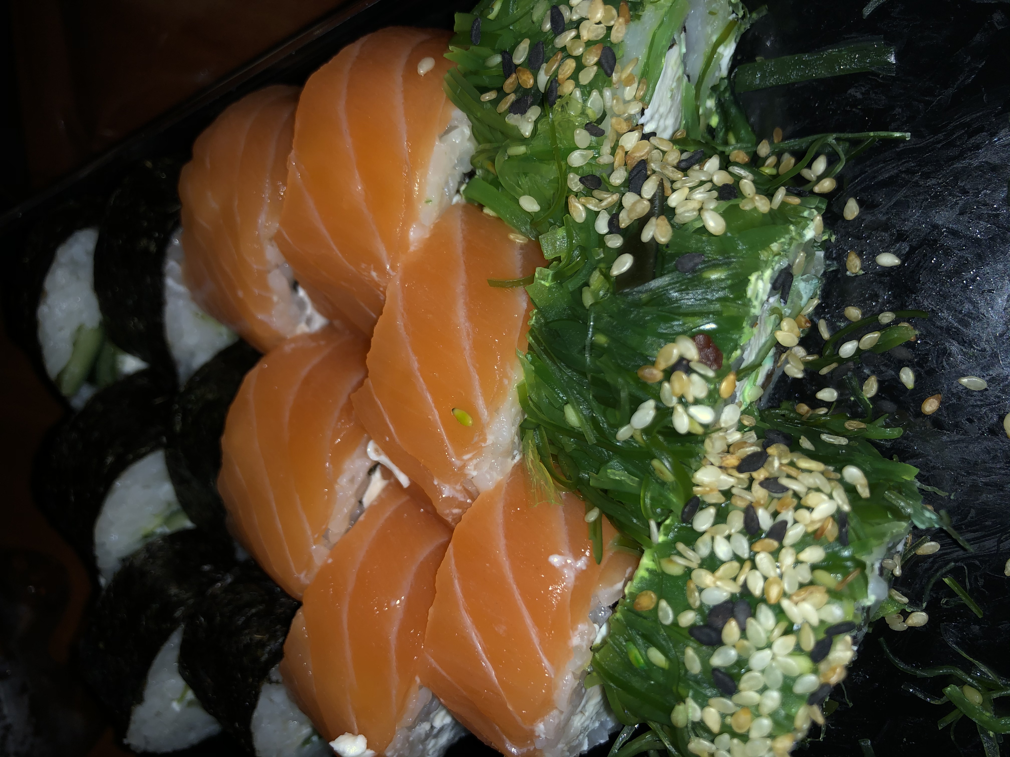 С чука салатом роллы не понравились, обожаю его, но здесь он был не вкусный, плюс от всех роллов был сильный запах уксуса, почему - то при заказе в другом месте я этого запаха не чувствую. Ну и смущает начальный ценник на роллы, перечеркнутый, с которого идёт скидка. По такой цене роллы я не видела нигде.