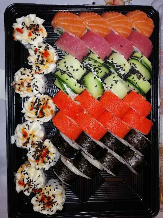 Заказывала где-то в декабре. Перепутала названия доставки, где все время заказывала и заказала здесь. Суши были сухие как-будто вчерашние. Очень расстроилась тогда, что любимые суши так испортились, и очень обрадовалась, когда поняла, что это другая доставка. Сорри, ребята, но есть суши получше ваших, надо работать над улучшением качества. Оценить положительно можно только хороший сервис и доставку к назначенному времени.