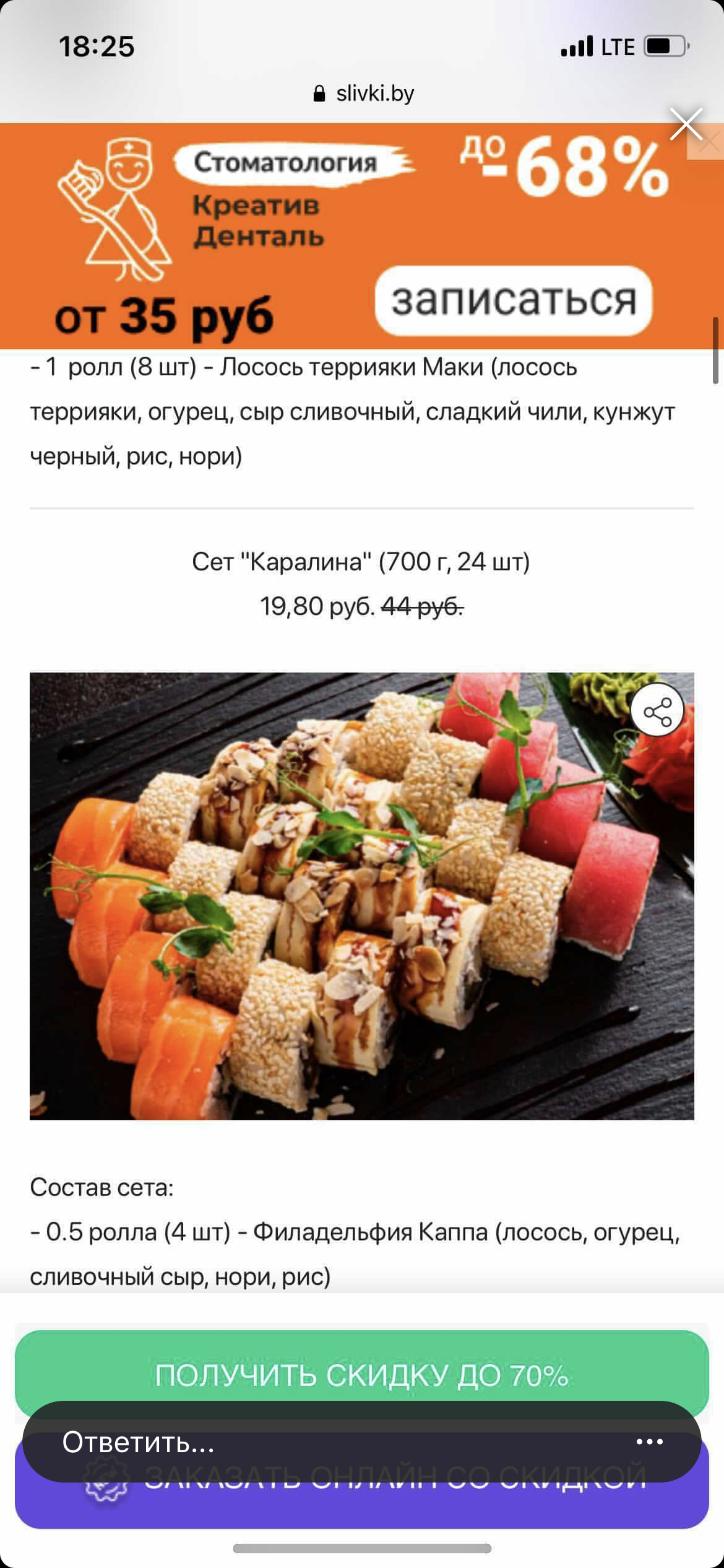 - Промокод дает право на скидку до 60% на суши-сеты от "ART FOOD"