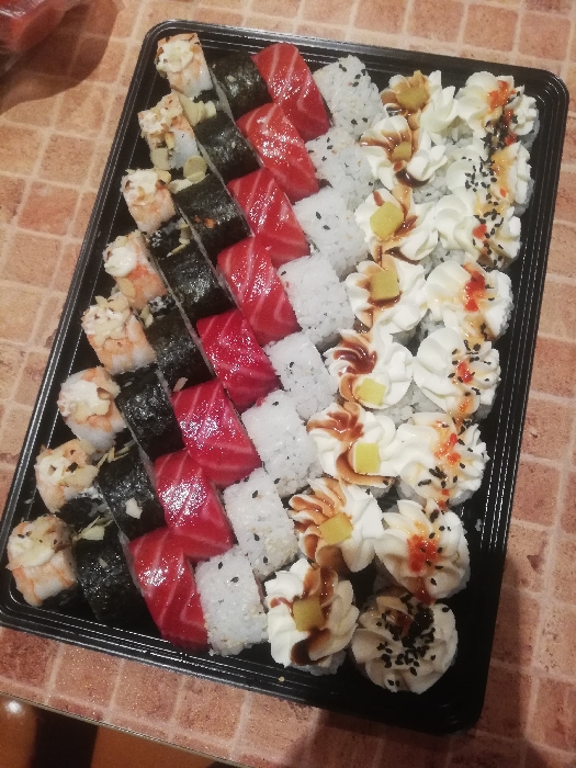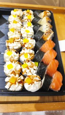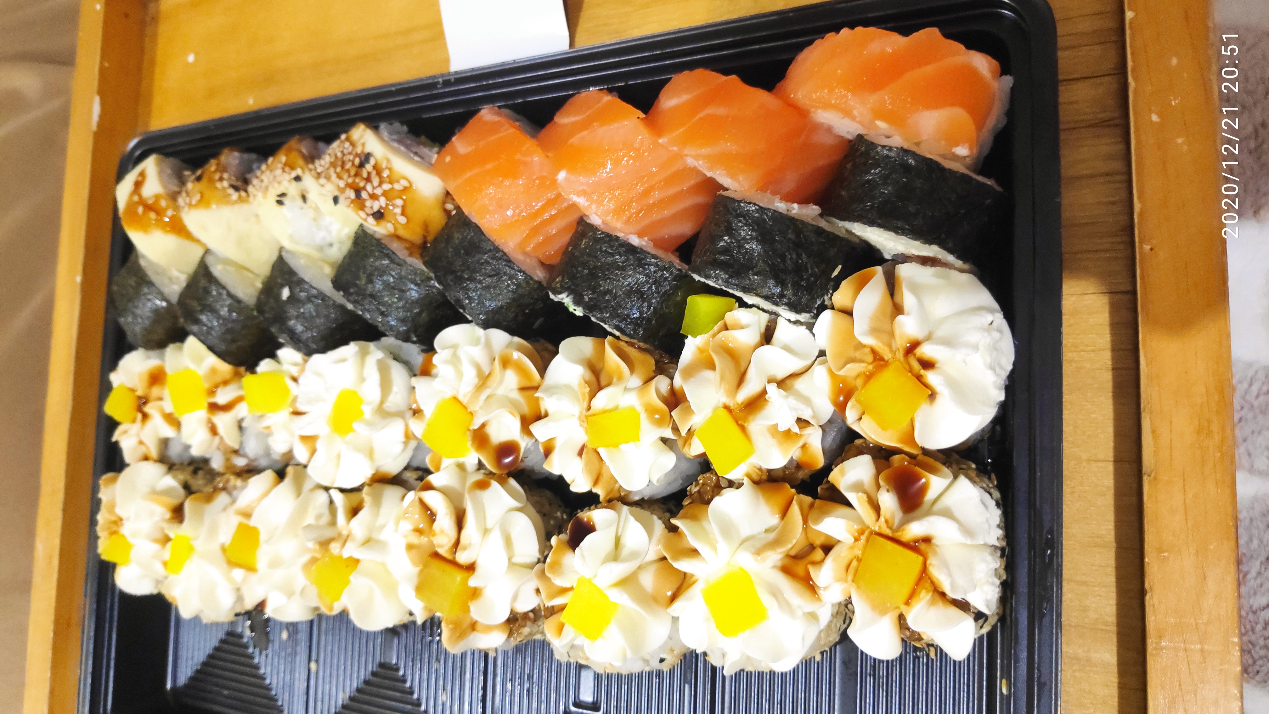 - Внимание! К предзаказу на 31.12 доступны: сет "Новогодний", "Мамины радости", "Макеба", "Ясахи", "Филадельфия", "Каприз", "Игра в кальмара", "Можно всё!", "Мама босс", "Палитра вкуса", "Муж купил", "Биг босс", "Мафия", "Манга", роллы Урамаки, все напитки и гарниры