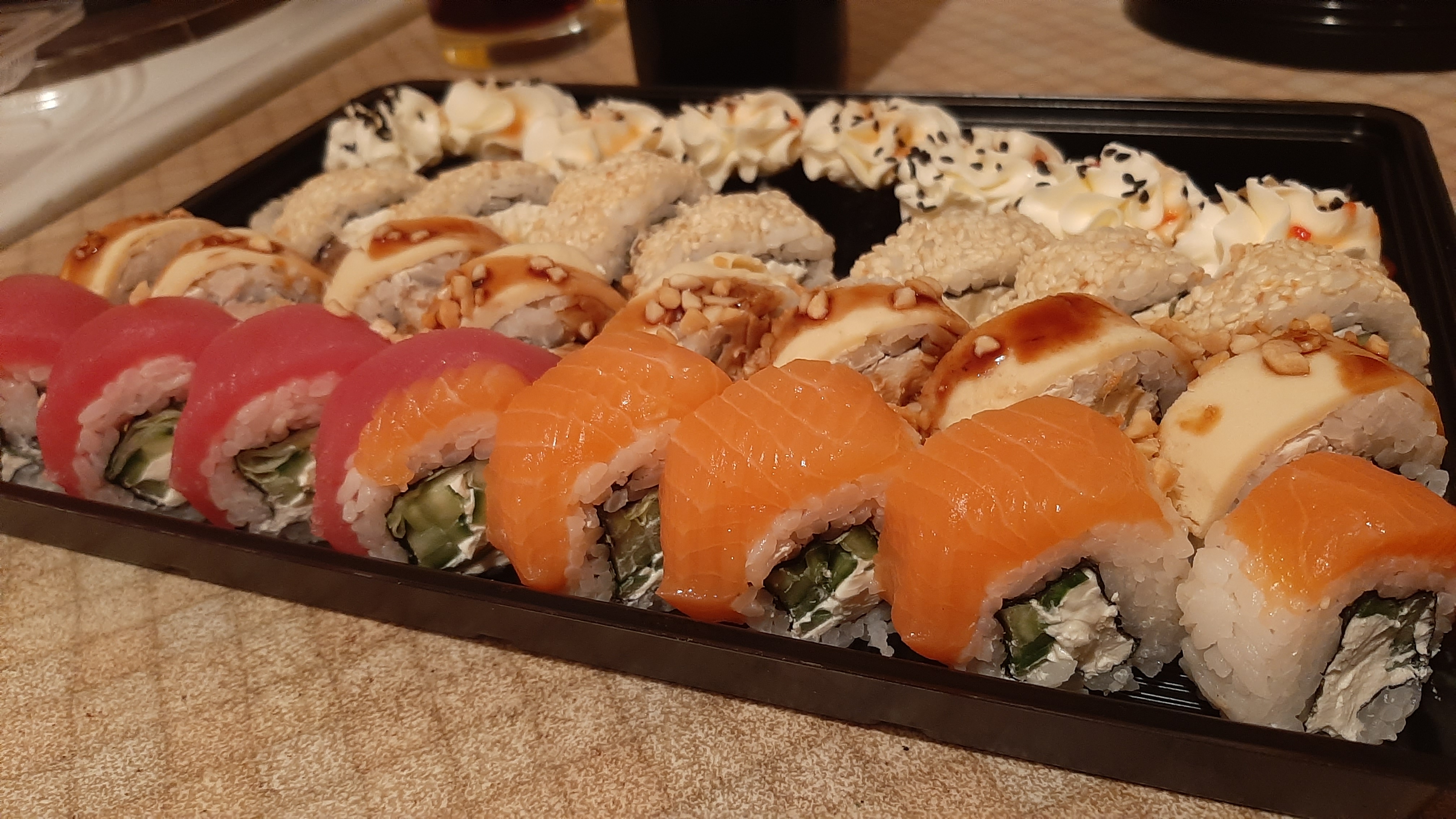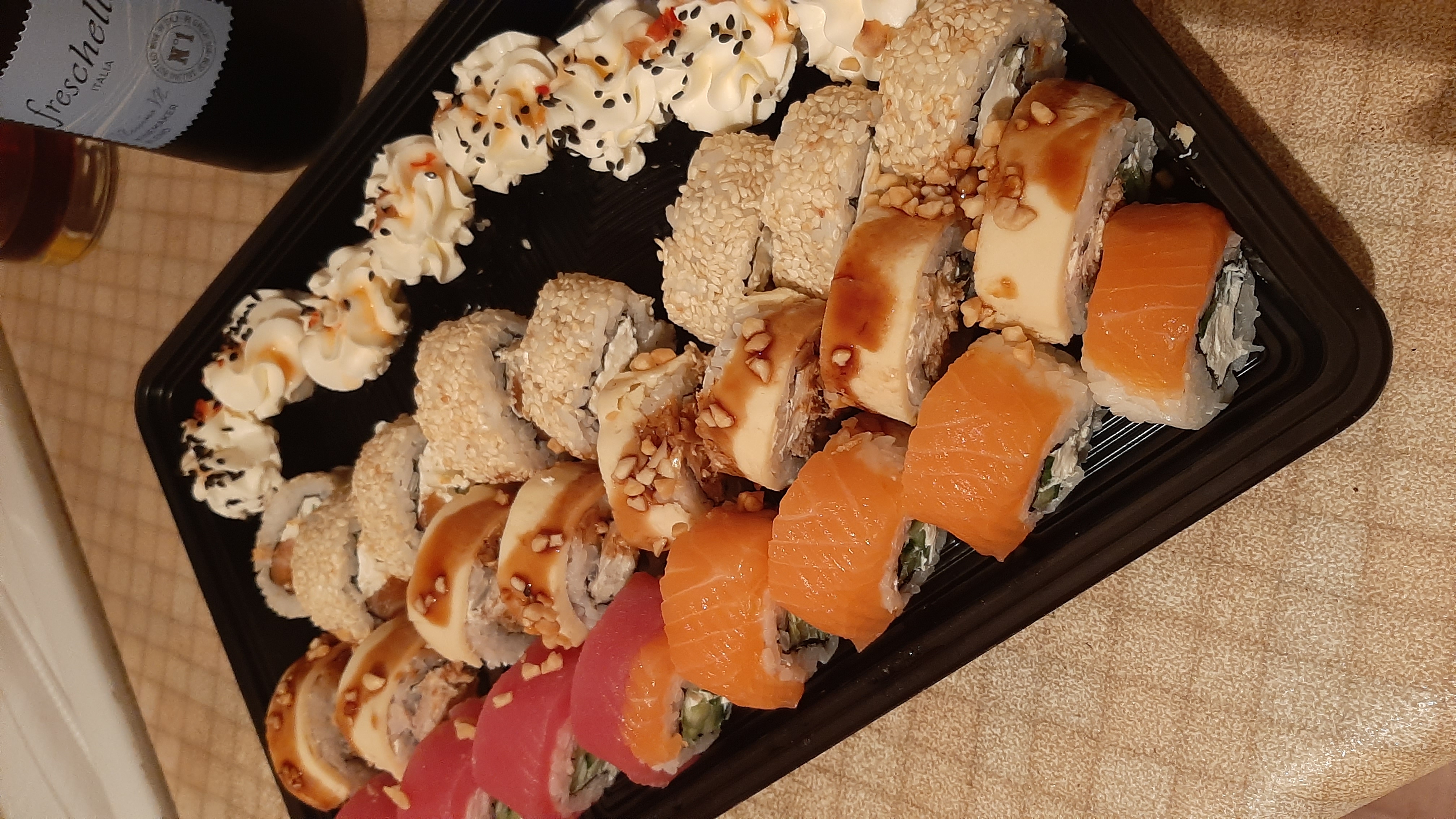 - Внимание! К предзаказу на 31.12 доступны: сет "Новогодний", "Мамины радости", "Макеба", "Ясахи", "Филадельфия", "Каприз", "Игра в кальмара", "Можно всё!", "Мама босс", "Палитра вкуса", "Муж купил", "Биг босс", "Мафия", "Манга", роллы Урамаки, все напитки и гарниры