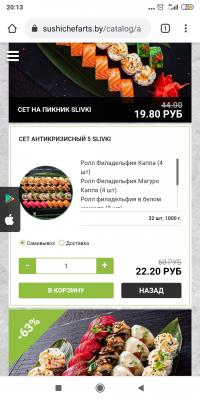 - Промокод дает право на скидку до 60% на суши-сеты от "ART FOOD"