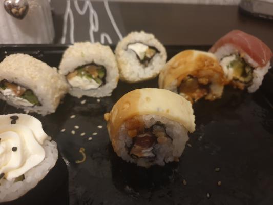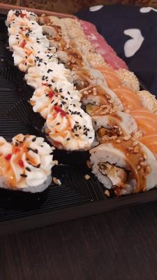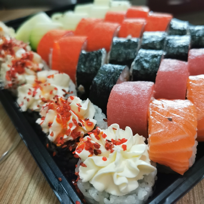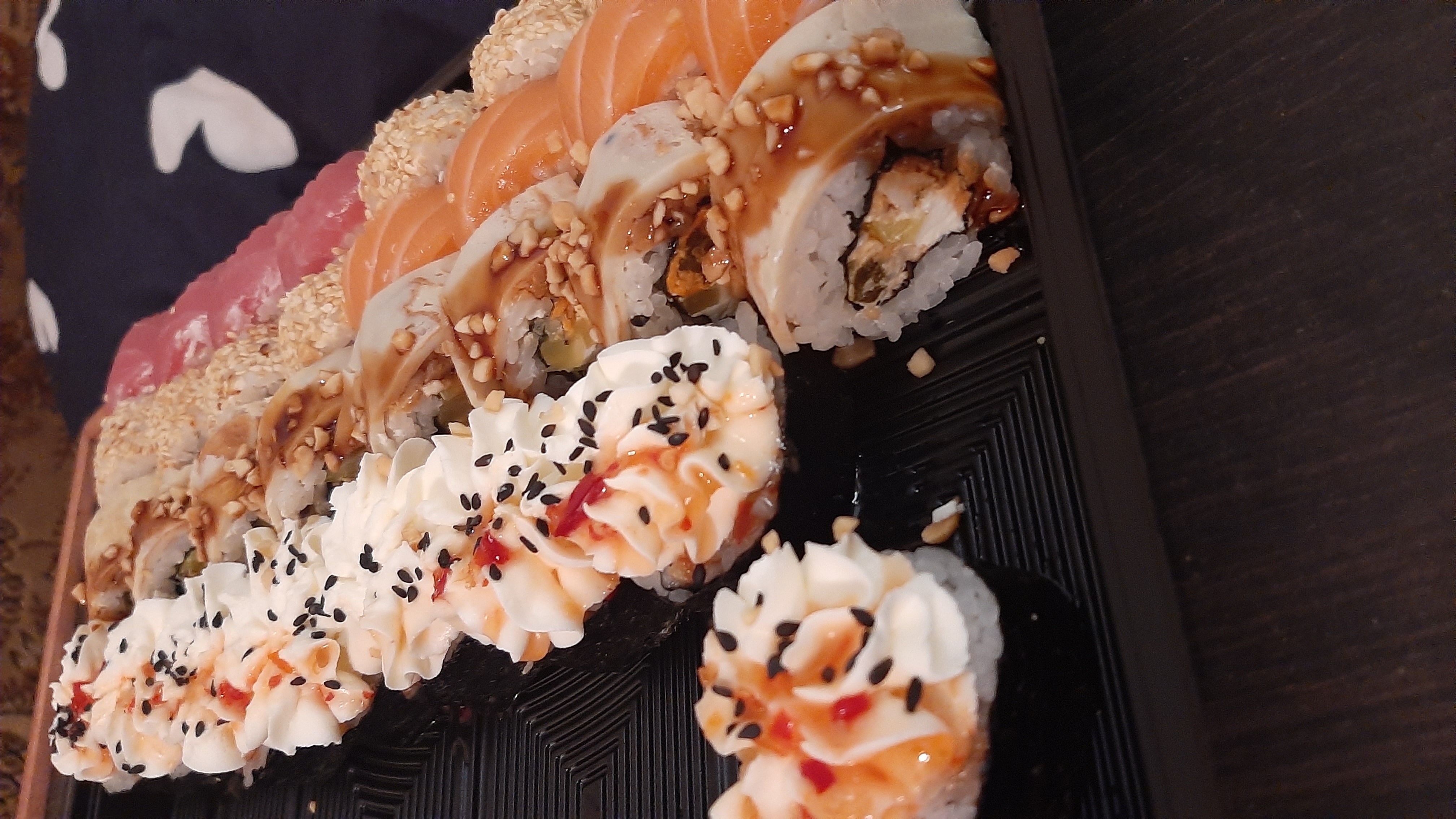 - Внимание! К предзаказу на 31.12 доступны: сет "Новогодний", "Мамины радости", "Макеба", "Ясахи", "Филадельфия", "Каприз", "Игра в кальмара", "Можно всё!", "Мама босс", "Палитра вкуса", "Муж купил", "Биг босс", "Мафия", "Манга", роллы Урамаки, все напитки и гарниры