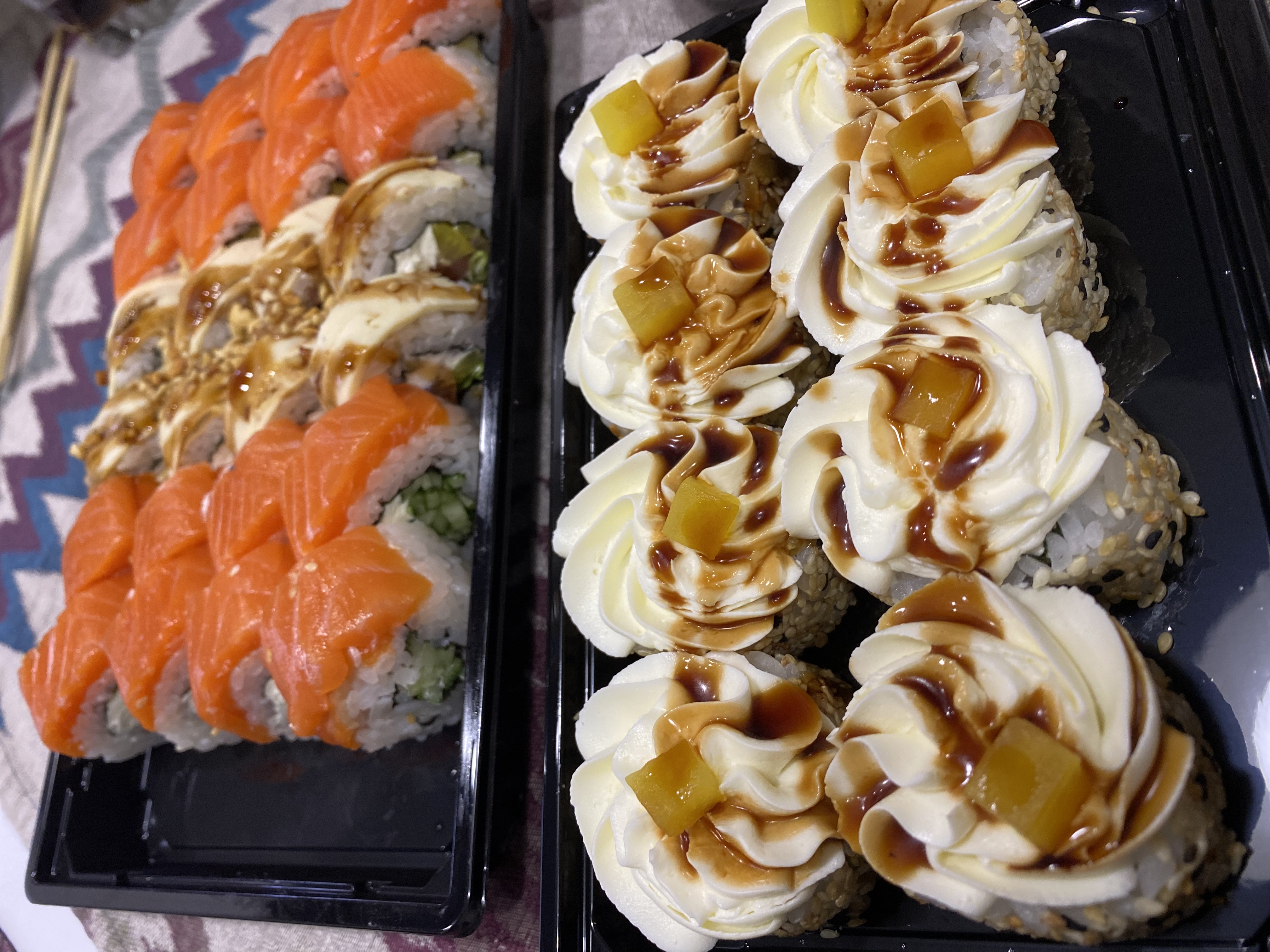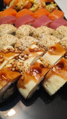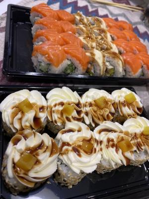 - Внимание! К предзаказу на 31.12 доступны: сет "Новогодний", "Мамины радости", "Макеба", "Ясахи", "Филадельфия", "Каприз", "Игра в кальмара", "Можно всё!", "Мама босс", "Палитра вкуса", "Муж купил", "Биг босс", "Мафия", "Манга", роллы Урамаки, все напитки и гарниры