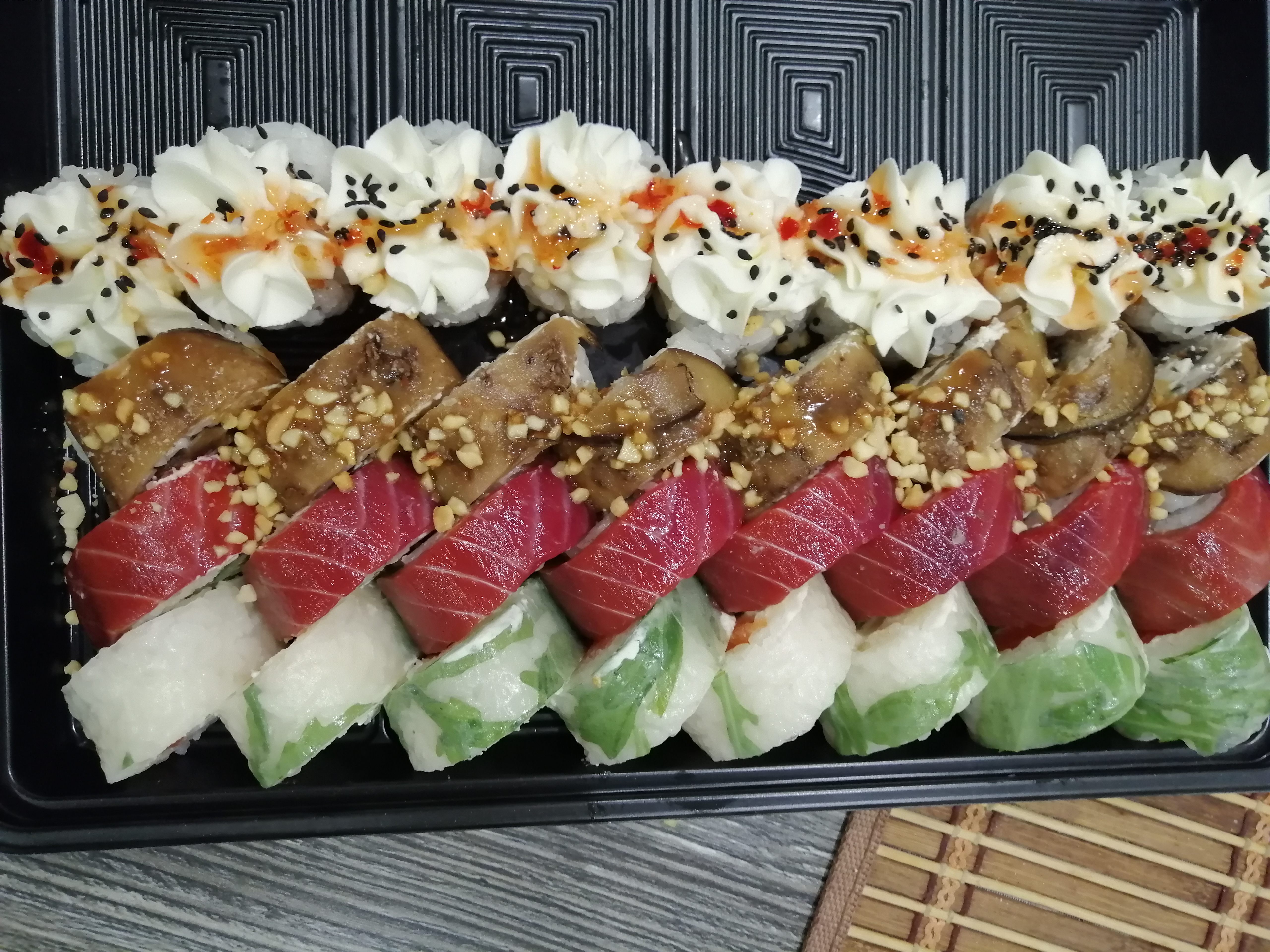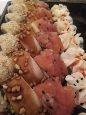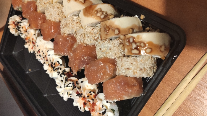 - Внимание! К предзаказу на 31.12 доступны: сет "Новогодний", "Мамины радости", "Макеба", "Ясахи", "Филадельфия", "Каприз", "Игра в кальмара", "Можно всё!", "Мама босс", "Палитра вкуса", "Муж купил", "Биг босс", "Мафия", "Манга", роллы Урамаки, все напитки и гарниры