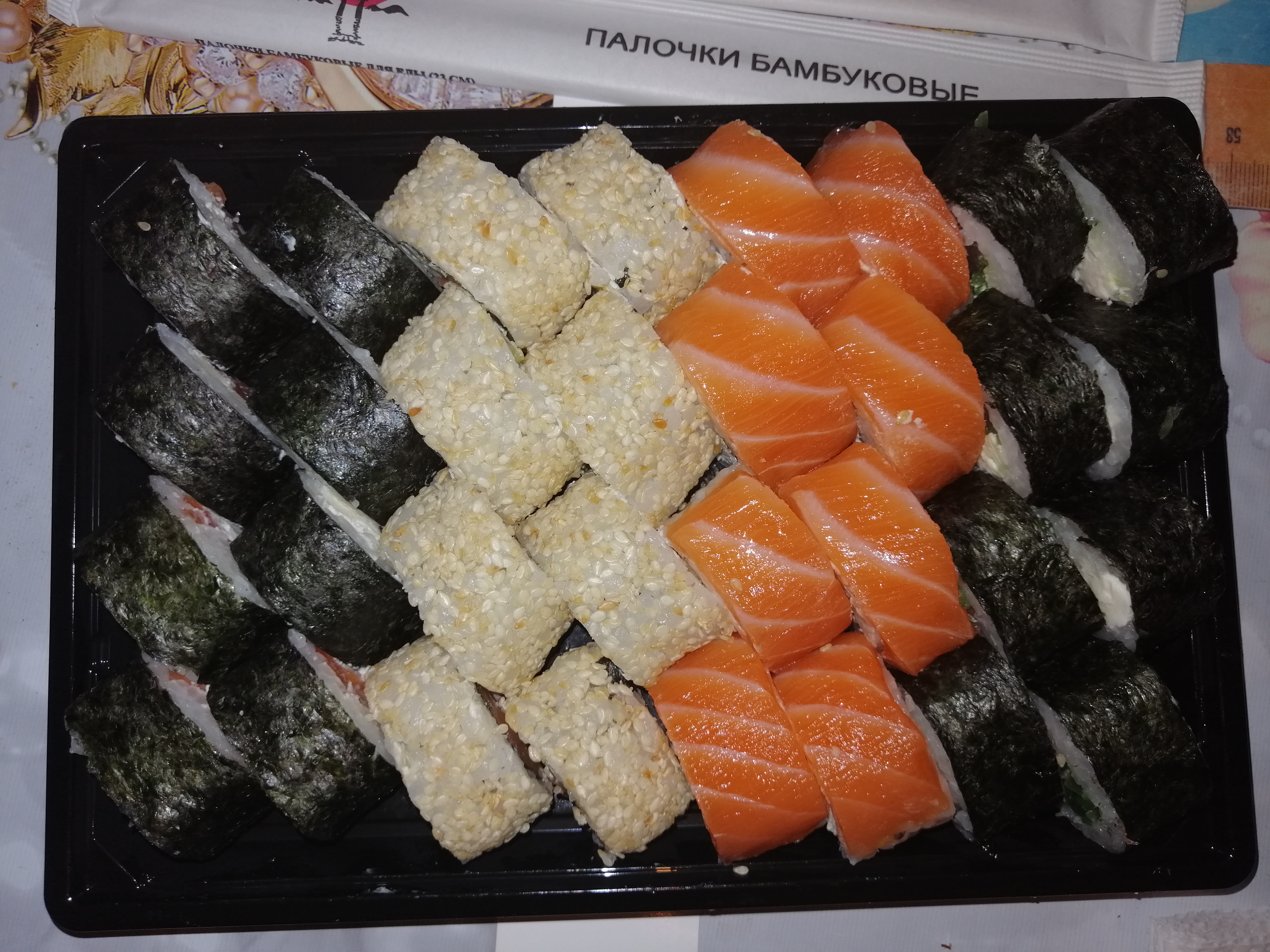 - На 1 суши-сет прилагается не более 4 комплектов палочек
