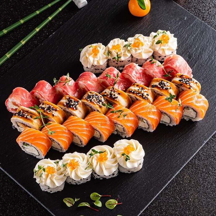 - Внимание! К предзаказу на 31.12 доступны: сет "Новогодний", "Мамины радости", "Макеба", "Ясахи", "Филадельфия", "Каприз", "Игра в кальмара", "Можно всё!", "Мама босс", "Палитра вкуса", "Муж купил", "Биг босс", "Мафия", "Манга", роллы Урамаки, все напитки и гарниры