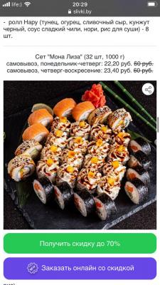 - Промокод дает право на скидку до 60% на суши-сеты от "ART FOOD"