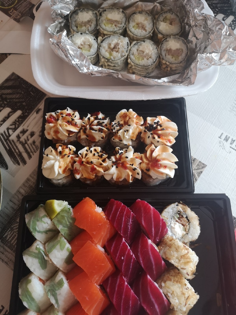 не заказывайте у них никогда , 2,5 часа доставка , во всех роллах попадались кости в рыбе , ребёнок ел и подавился костями. Требую вернуть деньги за такой заказ