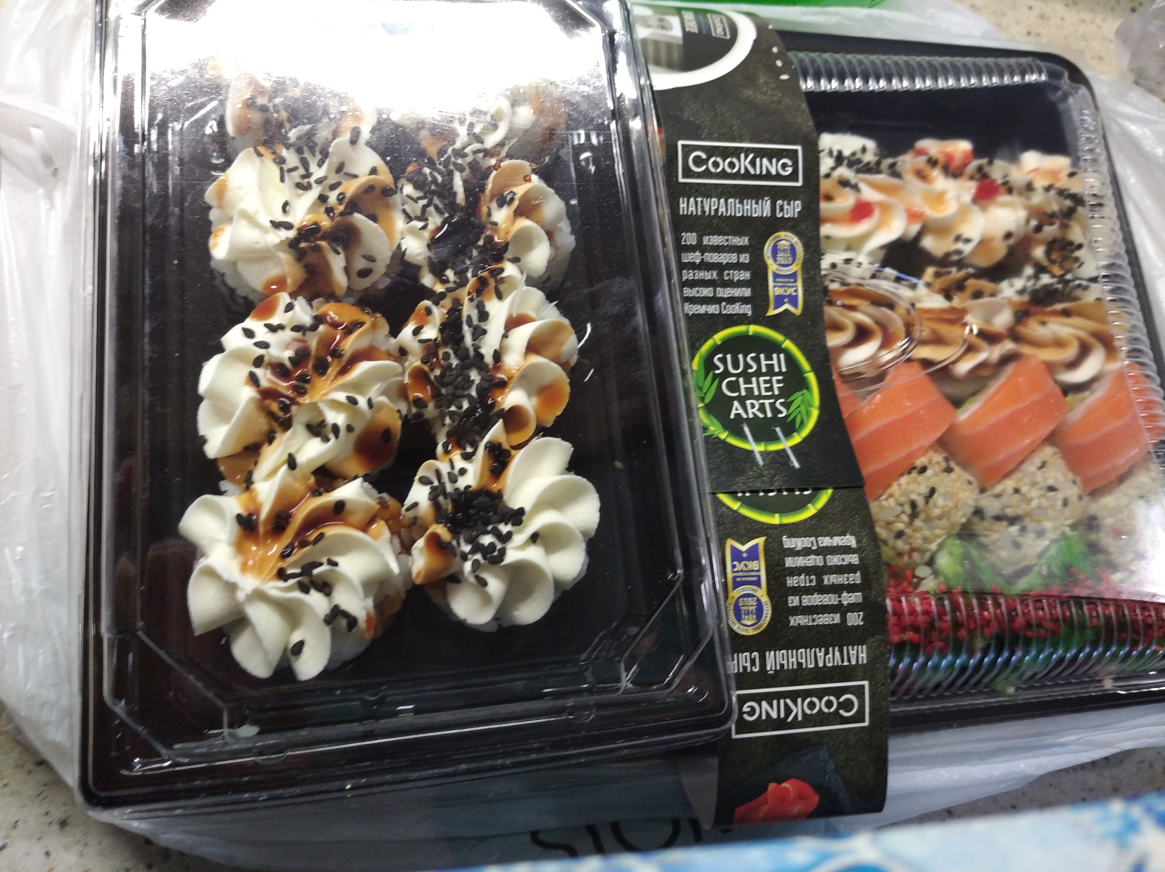 Заказали сеты Каралина и Крошка Мэри. К сожалению, оба сета вызвали вопросы: в одном недовес (50 г. плюс вес контейнера), во втором ролл развален.