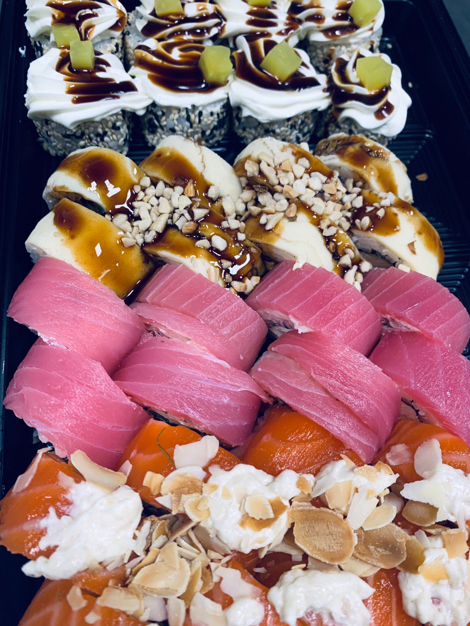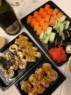 - Внимание! К предзаказу на 31.12 доступны: сет "Новогодний", "Мамины радости", "Макеба", "Ясахи", "Филадельфия", "Каприз", "Игра в кальмара", "Можно всё!", "Мама босс", "Палитра вкуса", "Муж купил", "Биг босс", "Мафия", "Манга", роллы Урамаки, все напитки и гарниры
