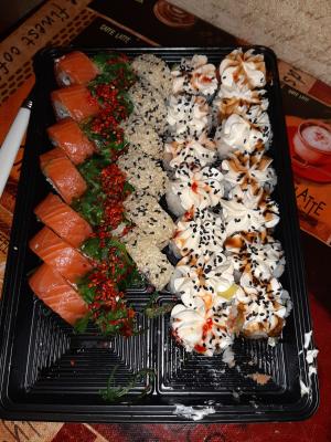 - Внимание! К предзаказу на 31.12 доступны: сет "Новогодний", "Мамины радости", "Макеба", "Ясахи", "Филадельфия", "Каприз", "Игра в кальмара", "Можно всё!", "Мама босс", "Палитра вкуса", "Муж купил", "Биг босс", "Мафия", "Манга", роллы Урамаки, все напитки и гарниры