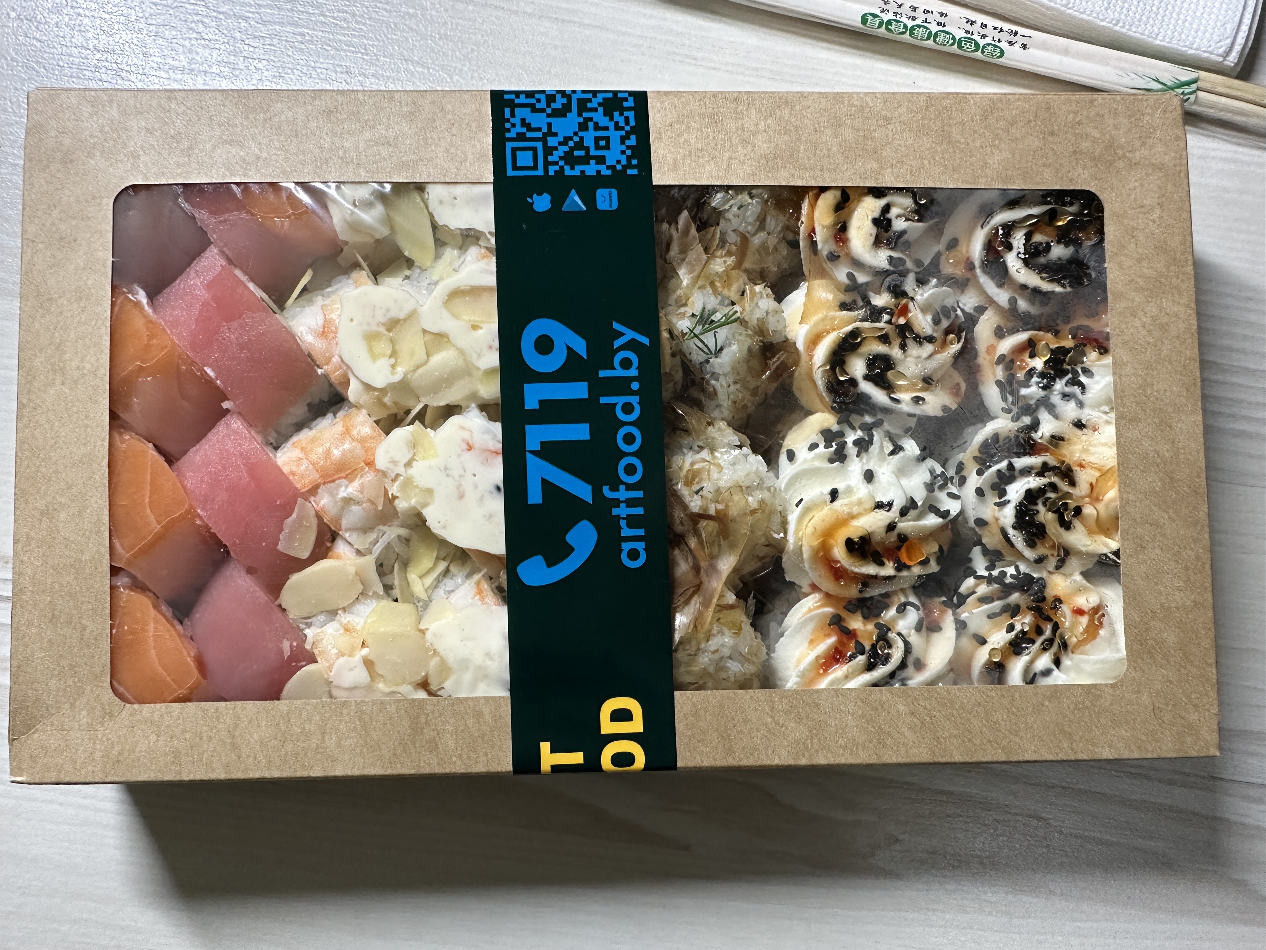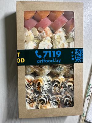 - Промокод дает право на скидку до 60% на суши-сеты от "ART FOOD"