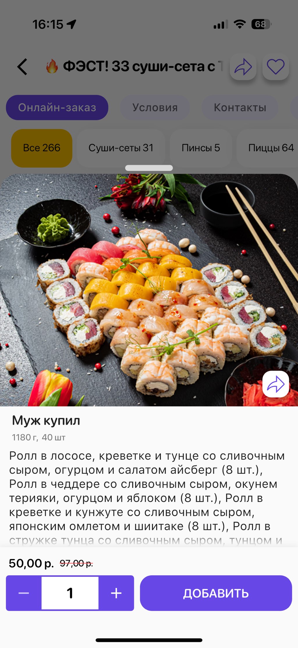 - Время доставки: от 80 минут (доступны все типы оплат)