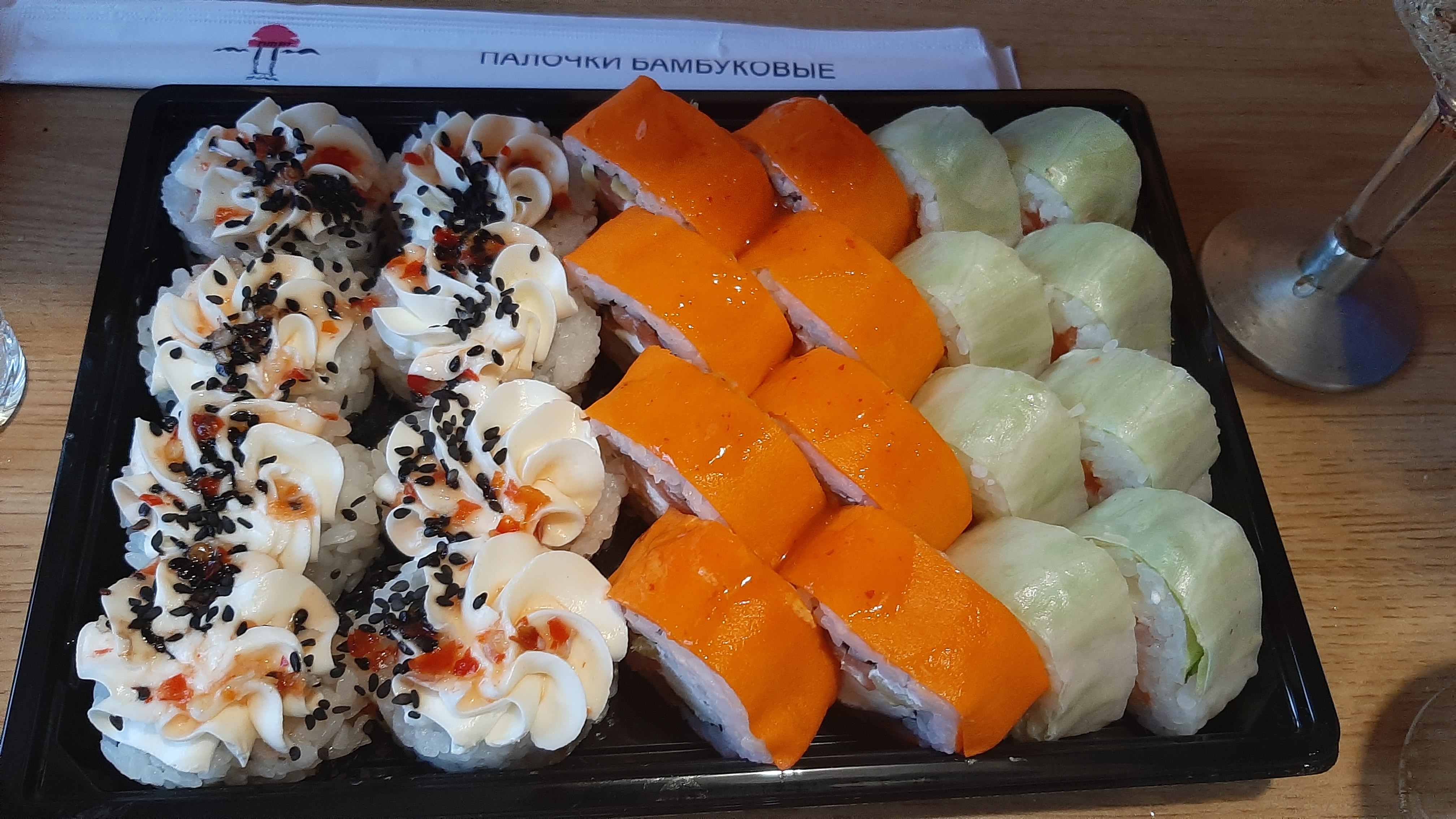 - Внимание! К предзаказу на 31.12 доступны: сет "Новогодний", "Мамины радости", "Макеба", "Ясахи", "Филадельфия", "Каприз", "Игра в кальмара", "Можно всё!", "Мама босс", "Палитра вкуса", "Муж купил", "Биг босс", "Мафия", "Манга", роллы Урамаки, все напитки и гарниры