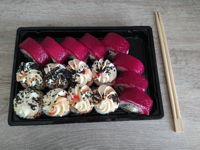 - На 1 суши-сет прилагается не более 4 комплектов палочек