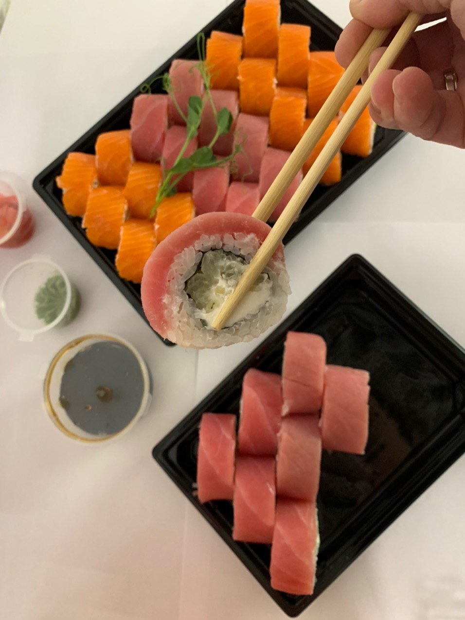 - На 1 суши-сет прилагается не более 4 комплектов палочек