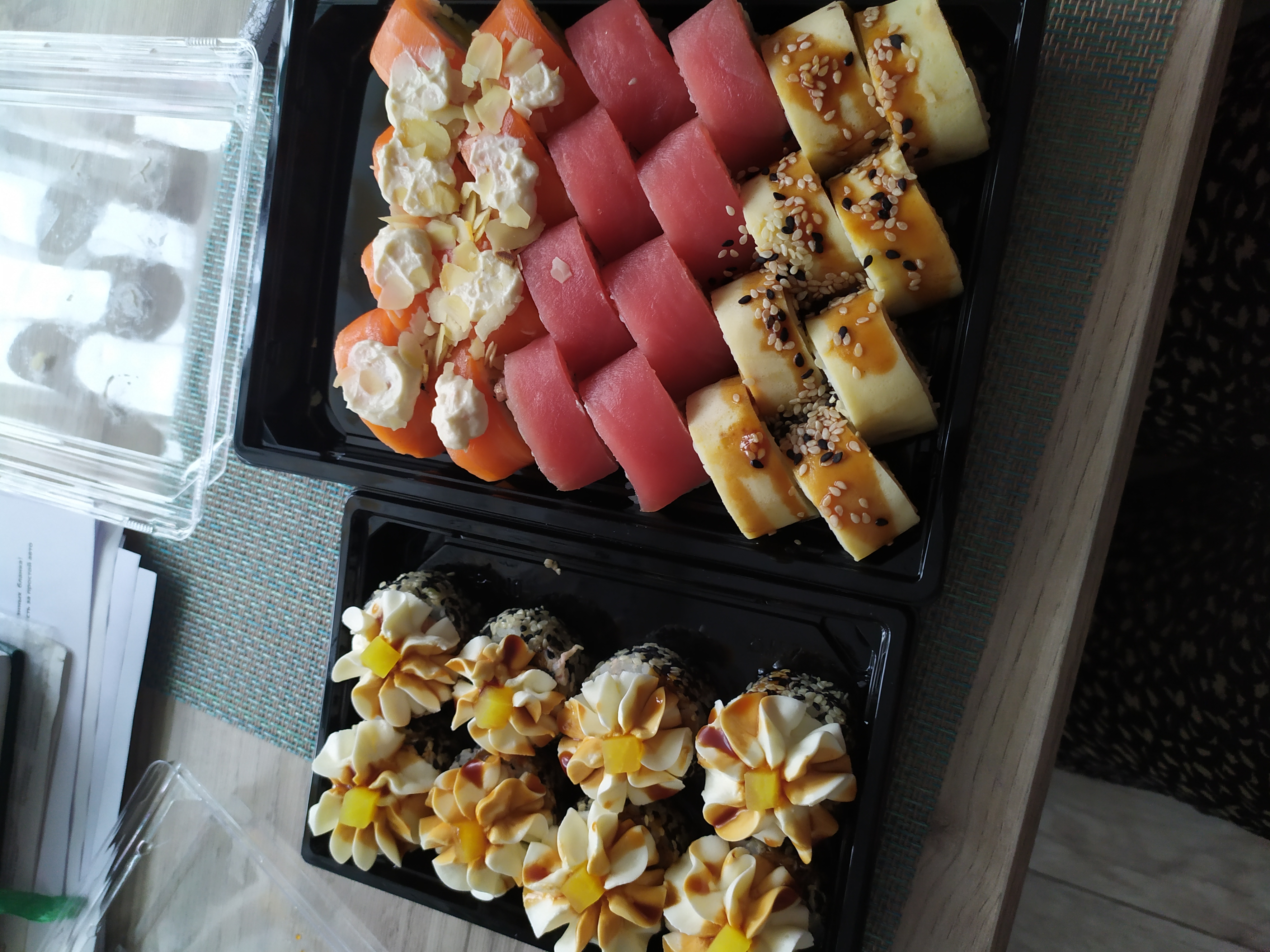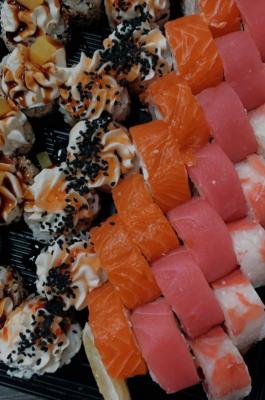 - Внимание! К предзаказу на 31.12 доступны: сет "Новогодний", "Мамины радости", "Макеба", "Ясахи", "Филадельфия", "Каприз", "Игра в кальмара", "Можно всё!", "Мама босс", "Палитра вкуса", "Муж купил", "Биг босс", "Мафия", "Манга", роллы Урамаки, все напитки и гарниры