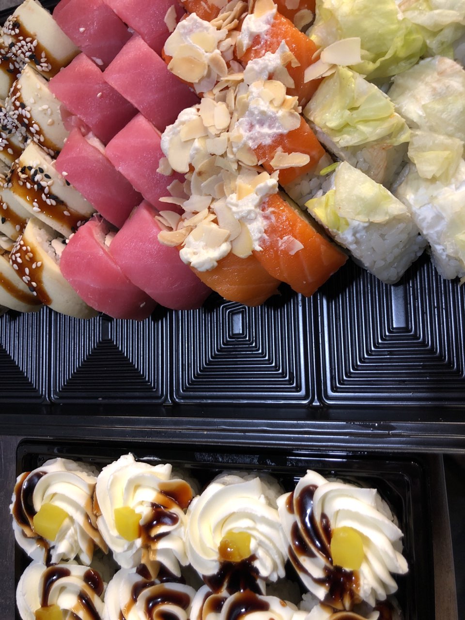 - Внимание! К предзаказу на 31.12 доступны: сет "Новогодний", "Мамины радости", "Макеба", "Ясахи", "Филадельфия", "Каприз", "Игра в кальмара", "Можно всё!", "Мама босс", "Палитра вкуса", "Муж купил", "Биг босс", "Мафия", "Манга", роллы Урамаки, все напитки и гарниры