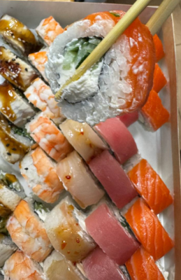 - На 1 суши-сет прилагается не более 4 комплектов палочек