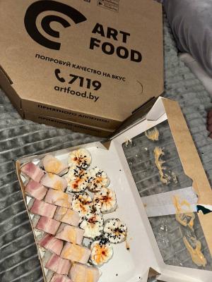 - Промокод дает право на скидку до 68% на суши-сеты, поке, горячие блюда, супы, салаты, роллы, гунканы, нигири, пицца, пинса от "ART FOOD"