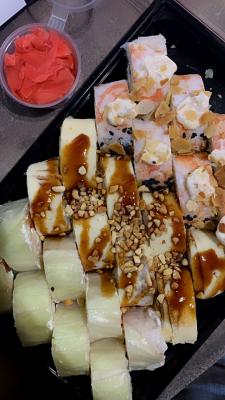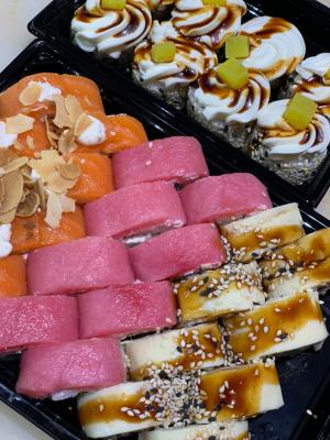 - Внимание! К предзаказу на 31.12 доступны: сет "Новогодний", "Мамины радости", "Макеба", "Ясахи", "Филадельфия", "Каприз", "Игра в кальмара", "Можно всё!", "Мама босс", "Палитра вкуса", "Муж купил", "Биг босс", "Мафия", "Манга", роллы Урамаки, все напитки и гарниры
