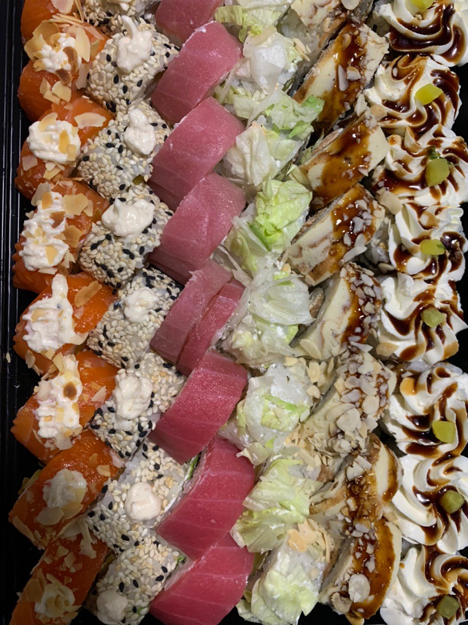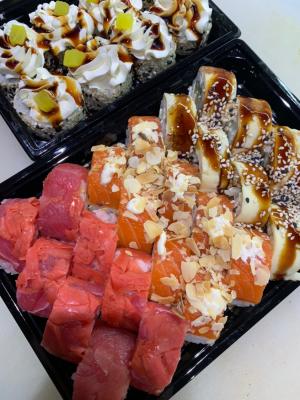 - Внимание! К предзаказу на 31.12 доступны: сет "Новогодний", "Мамины радости", "Макеба", "Ясахи", "Филадельфия", "Каприз", "Игра в кальмара", "Можно всё!", "Мама босс", "Палитра вкуса", "Муж купил", "Биг босс", "Мафия", "Манга", роллы Урамаки, все напитки и гарниры