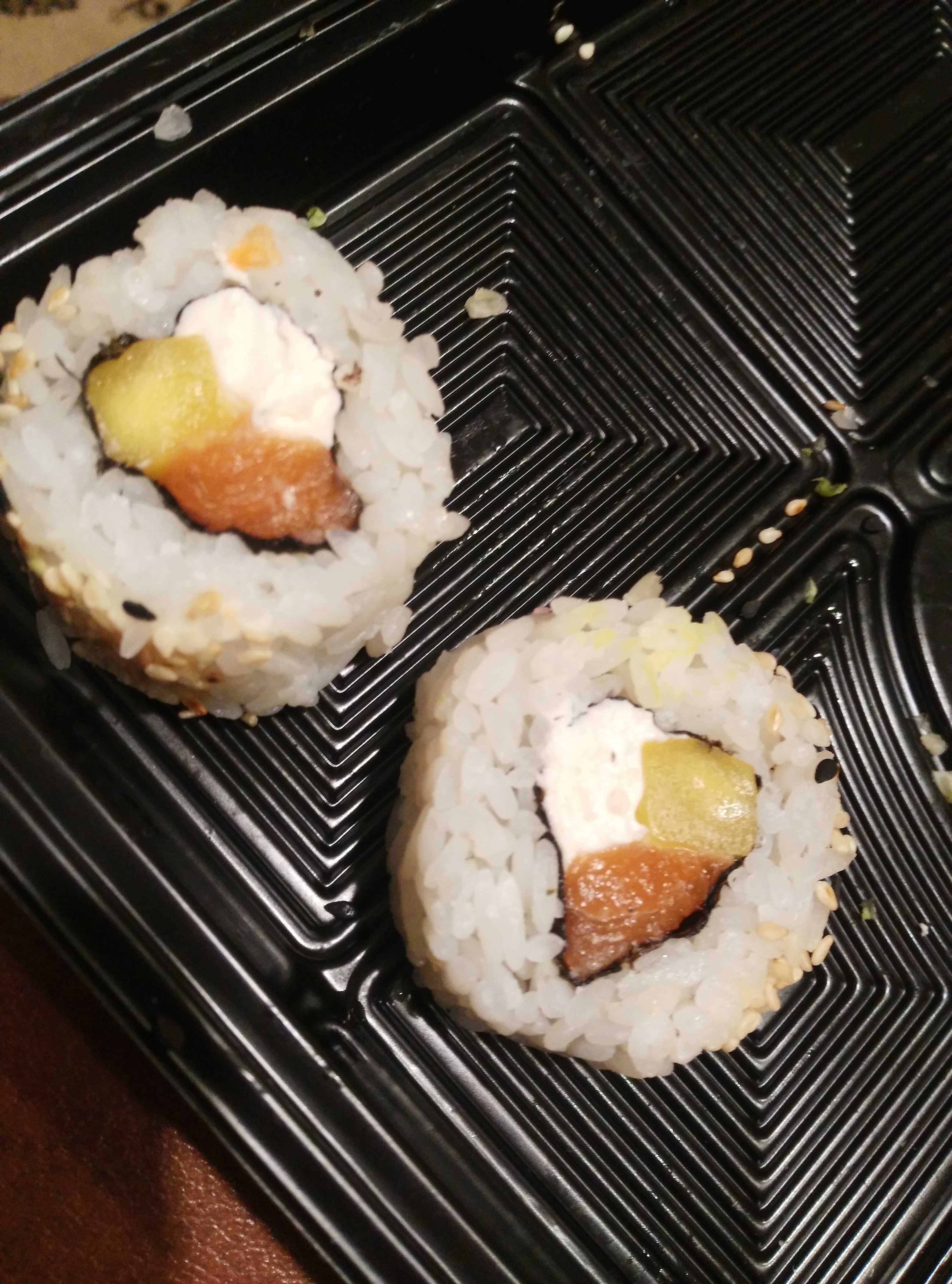 1. Рыба на роллах была какая то рыхлая