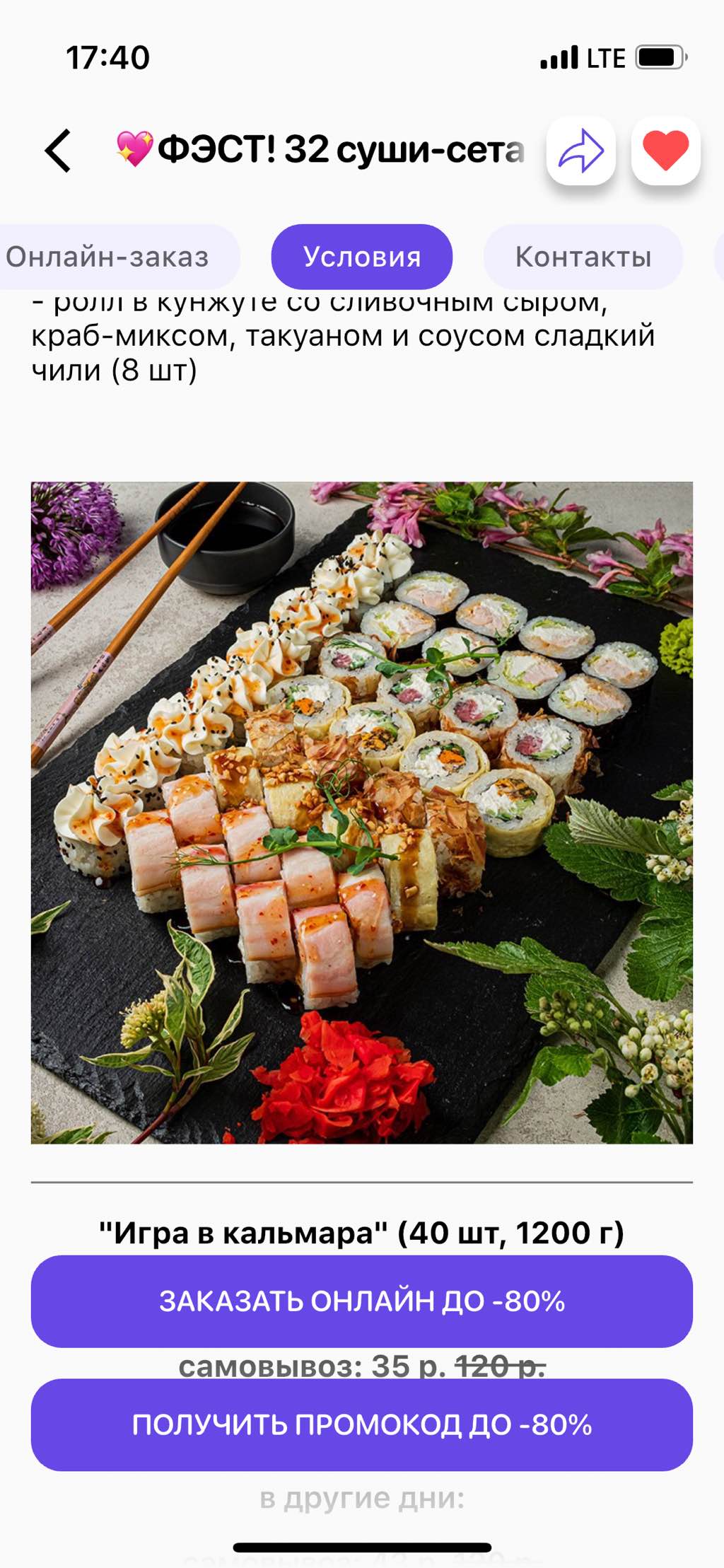 - Промокод дает право на скидку до 60% на суши-сеты от "ART FOOD"