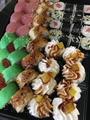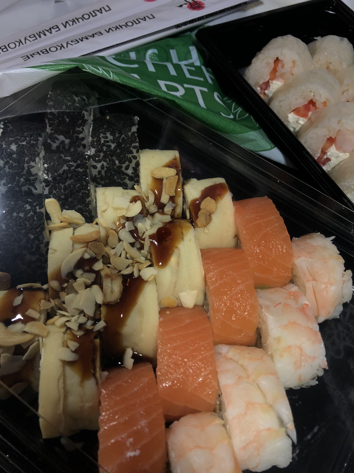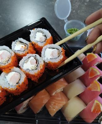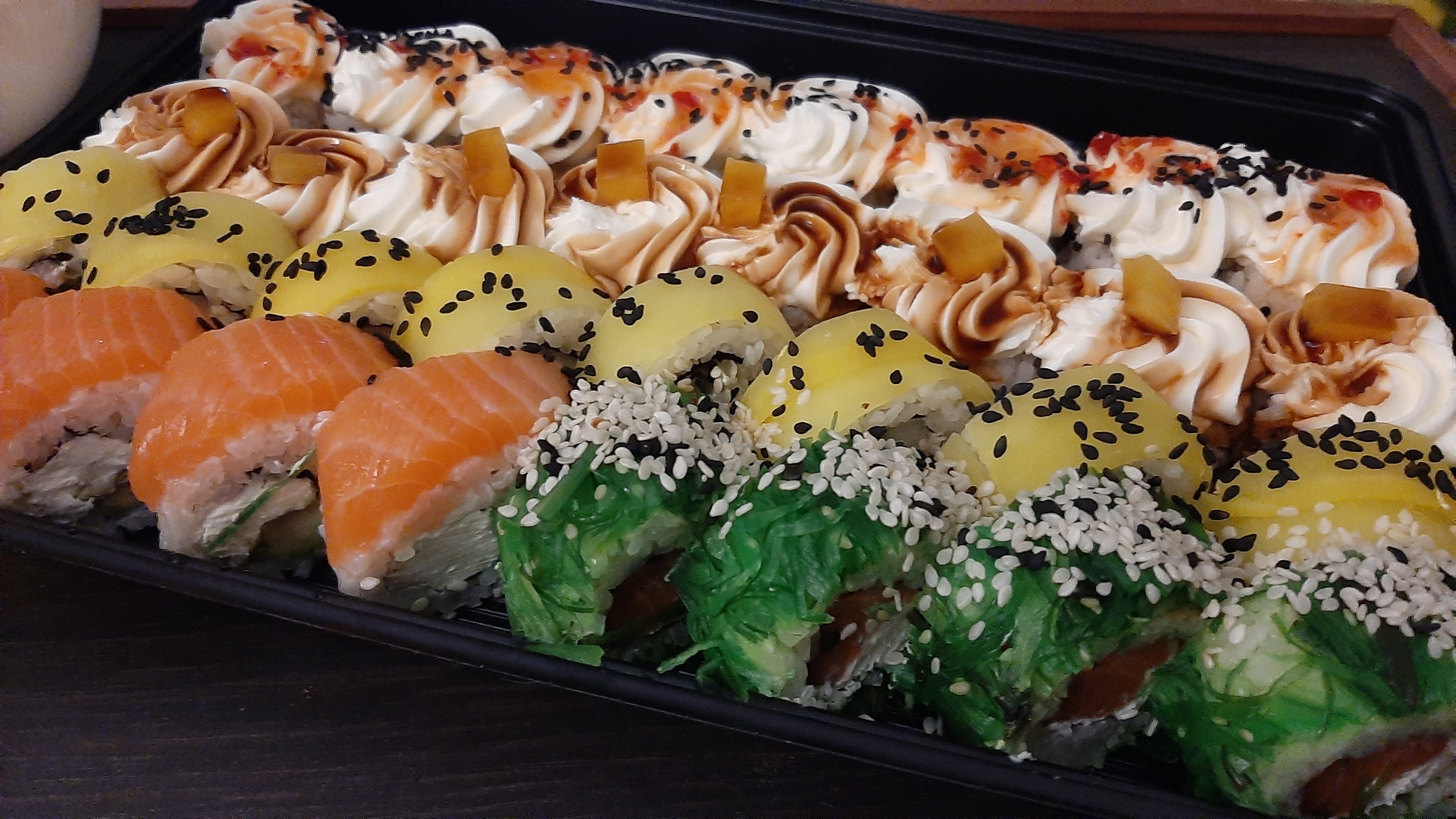 - Внимание! К предзаказу на 31.12 доступны: сет "Новогодний", "Мамины радости", "Макеба", "Ясахи", "Филадельфия", "Каприз", "Игра в кальмара", "Можно всё!", "Мама босс", "Палитра вкуса", "Муж купил", "Биг босс", "Мафия", "Манга", роллы Урамаки, все напитки и гарниры