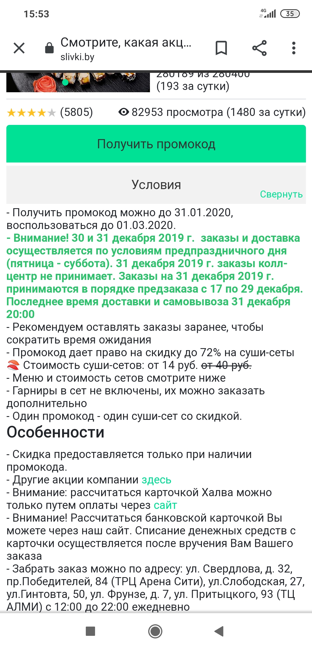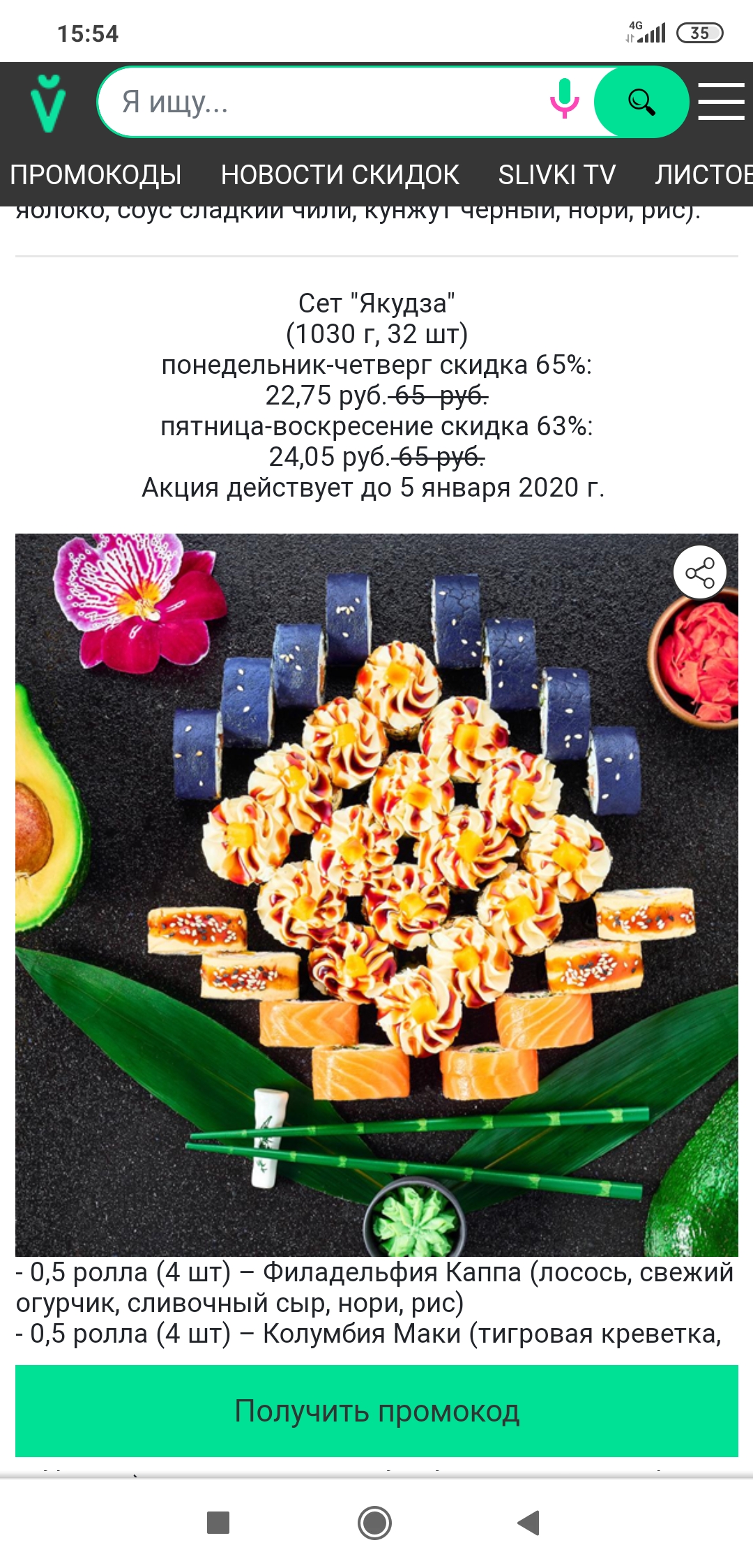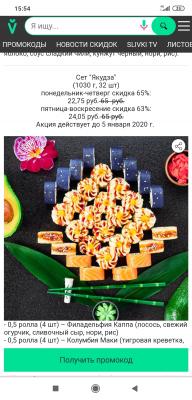 - Промокод дает право на скидку до 60% на суши-сеты от "ART FOOD"