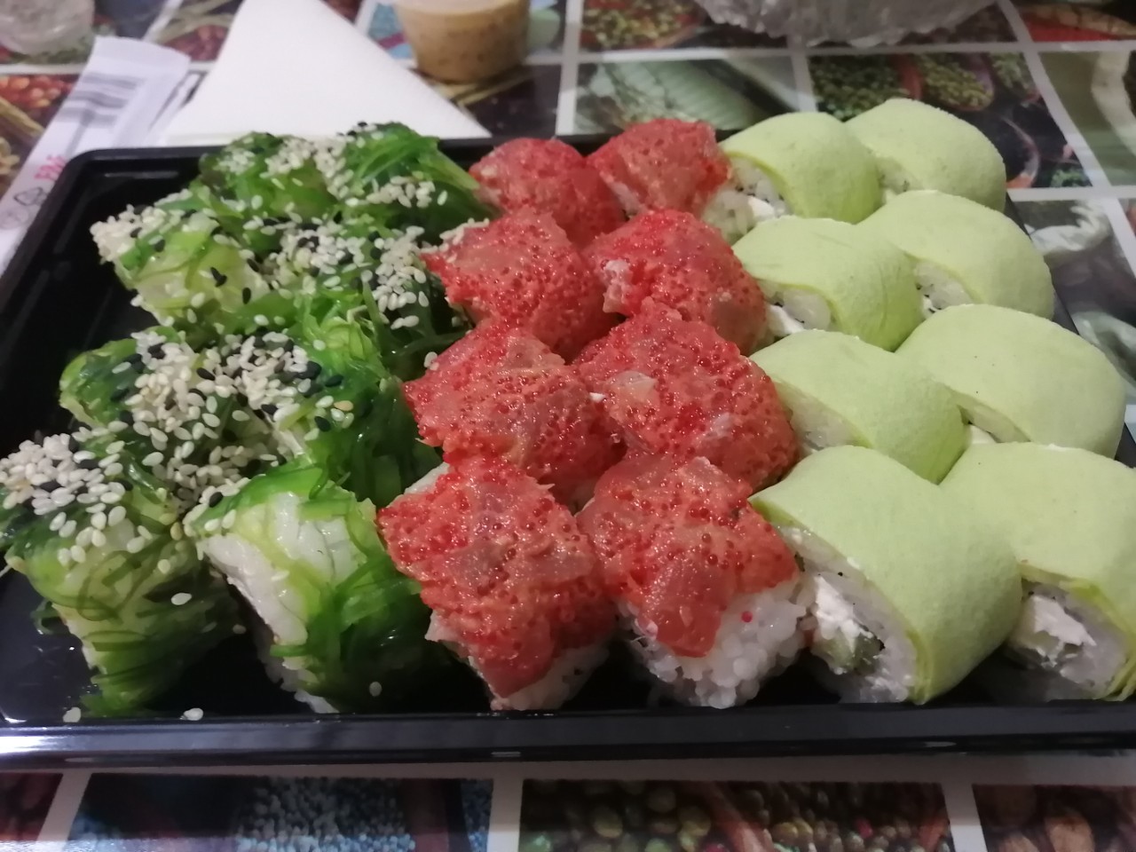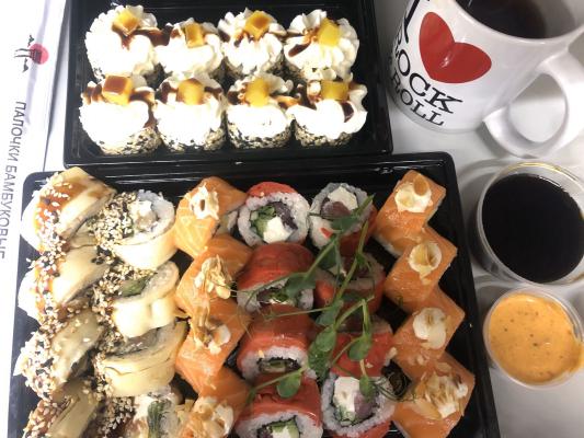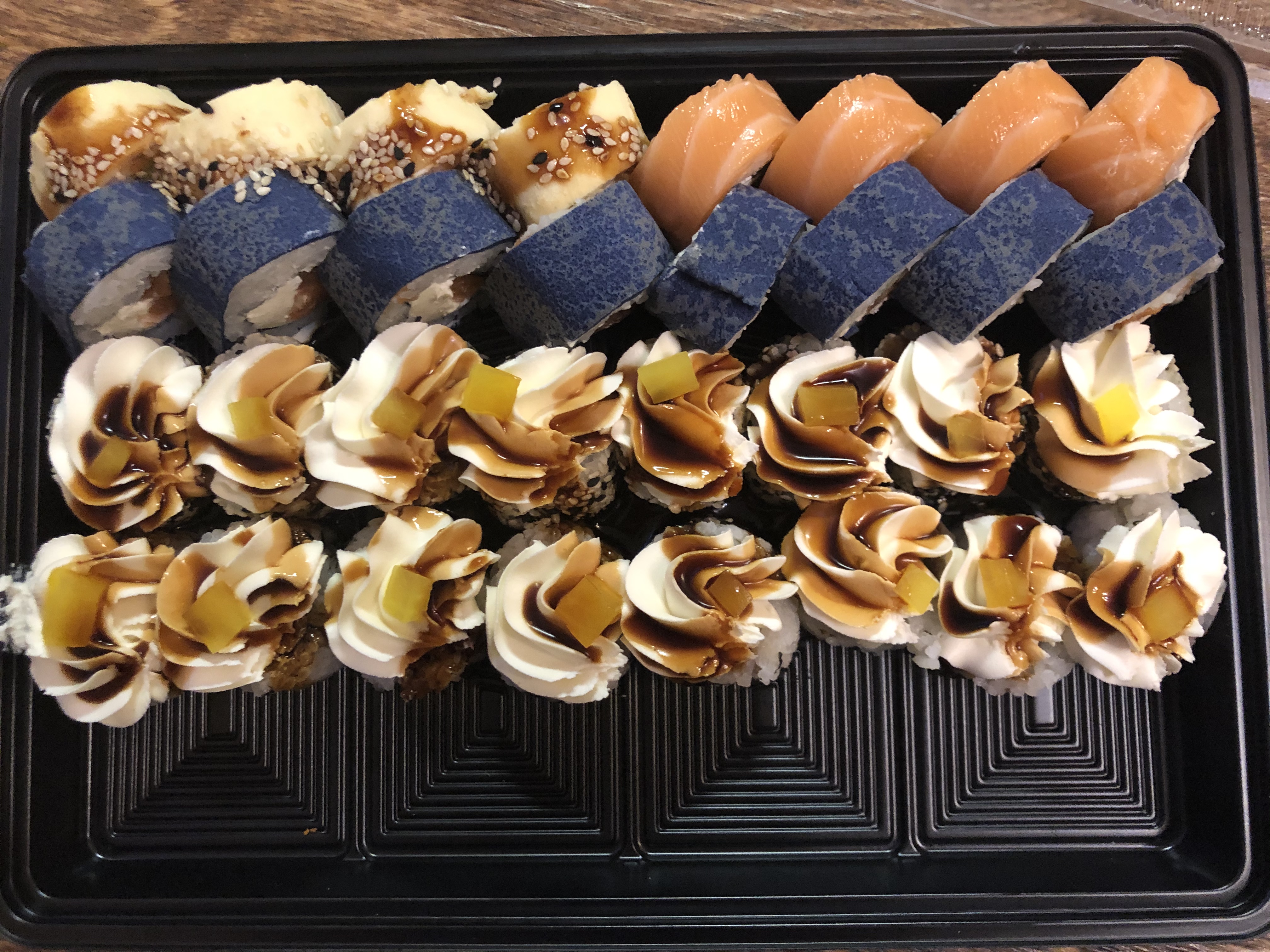 - Внимание! К предзаказу на 31.12 доступны: сет "Новогодний", "Мамины радости", "Макеба", "Ясахи", "Филадельфия", "Каприз", "Игра в кальмара", "Можно всё!", "Мама босс", "Палитра вкуса", "Муж купил", "Биг босс", "Мафия", "Манга", роллы Урамаки, все напитки и гарниры