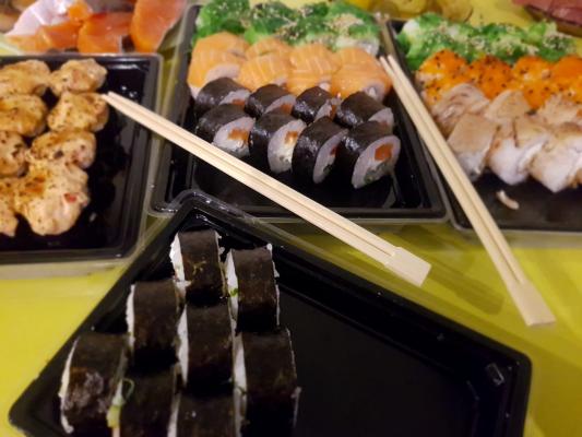 - На 1 суши-сет прилагается не более 4 комплектов палочек
