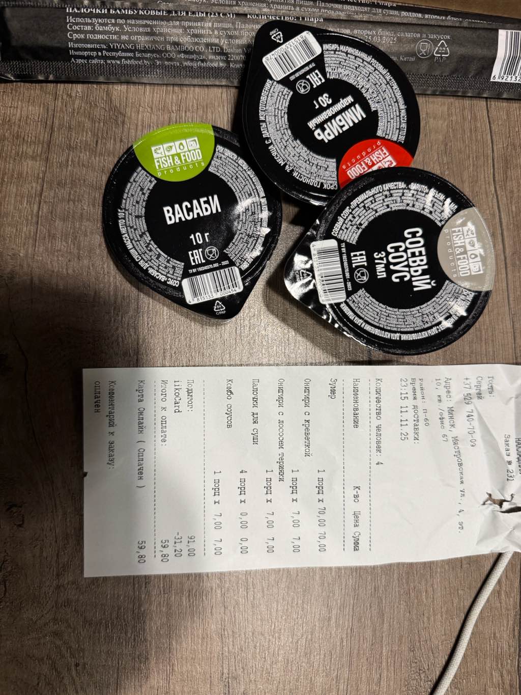 - На 1 суши-сет прилагается не более 4 комплектов палочек