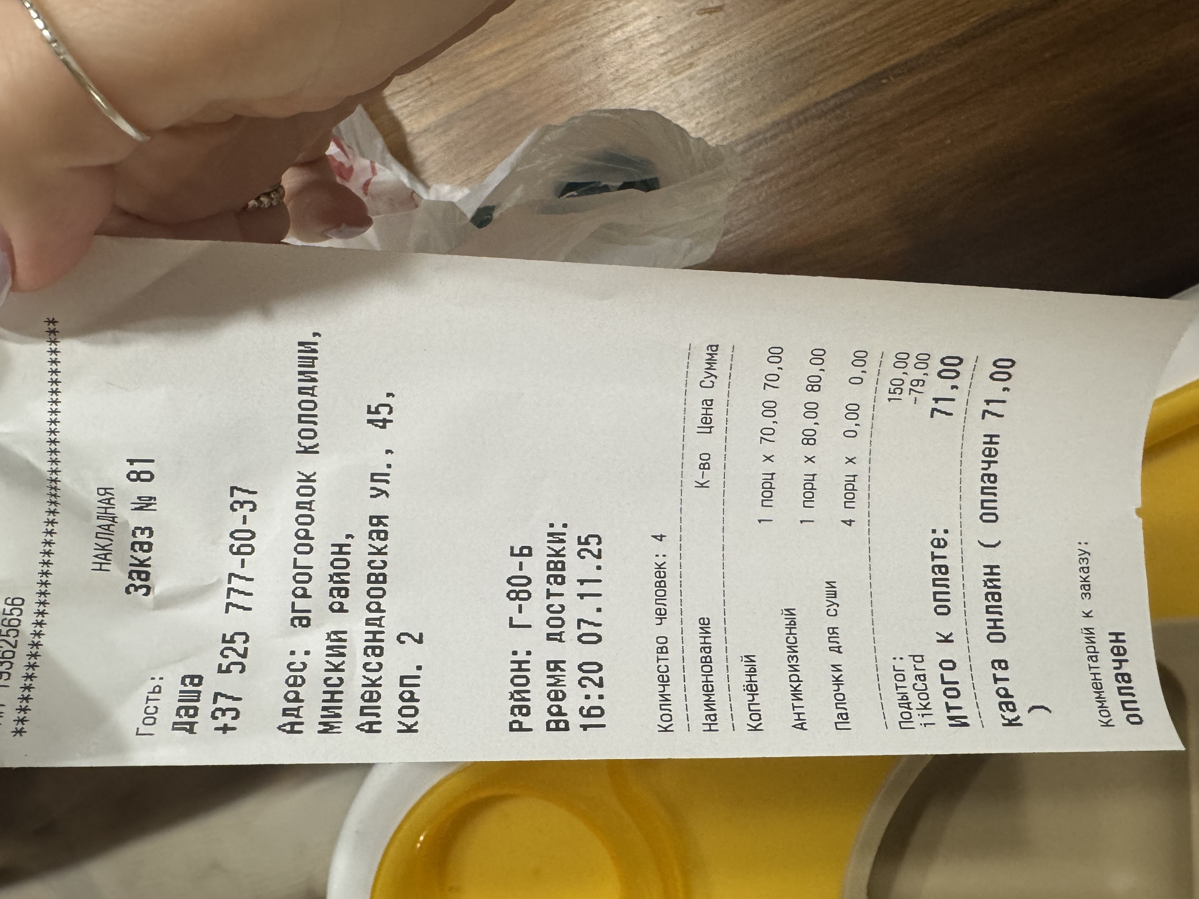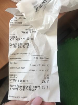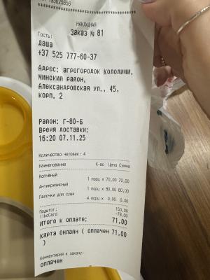 - Время доставки: от 80 минут (доступны все типы оплат)