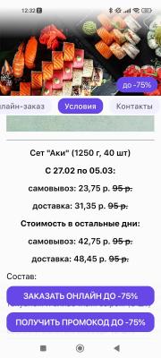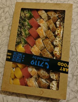 - Промокод дает право на скидку до 60% на суши-сеты от "ART FOOD"