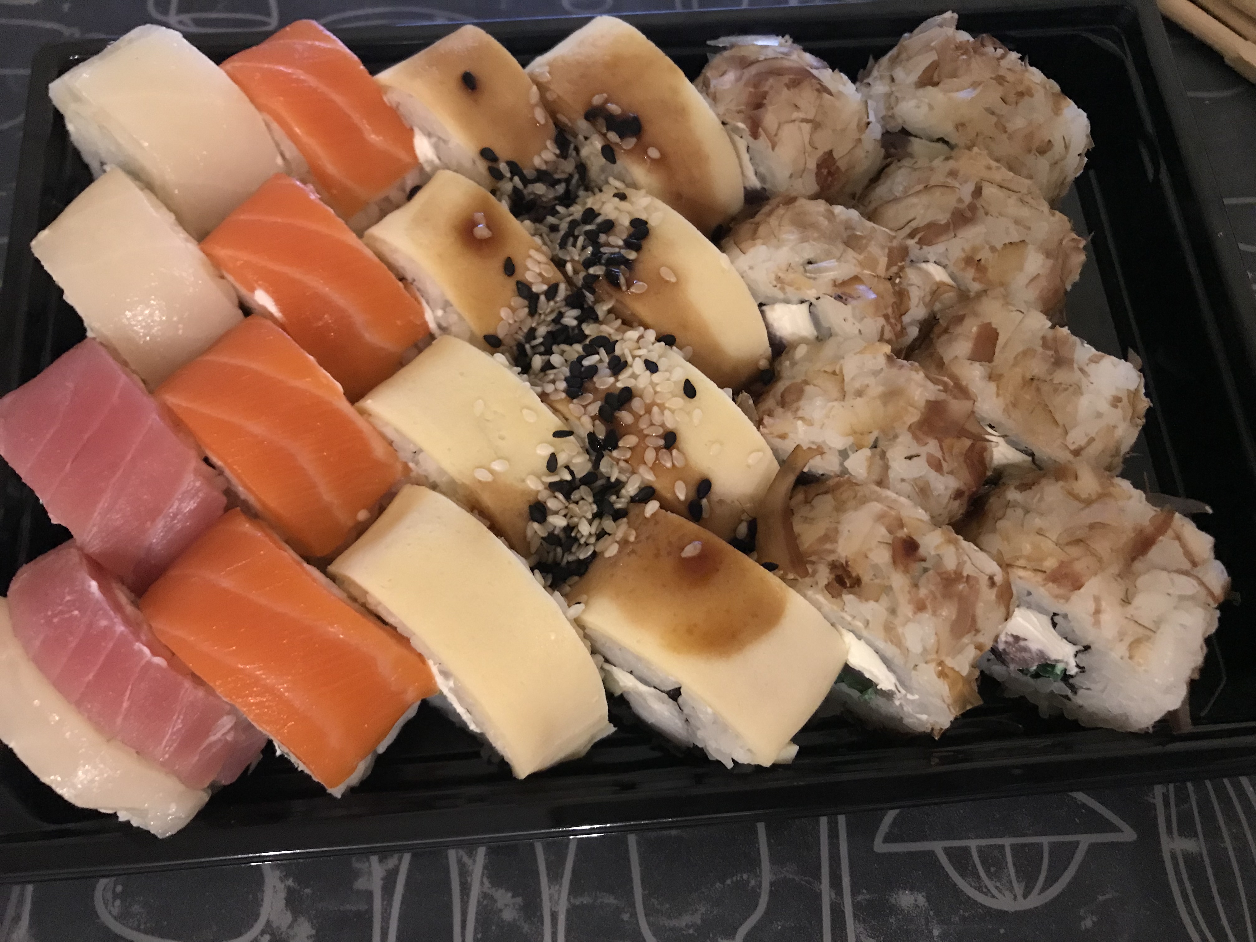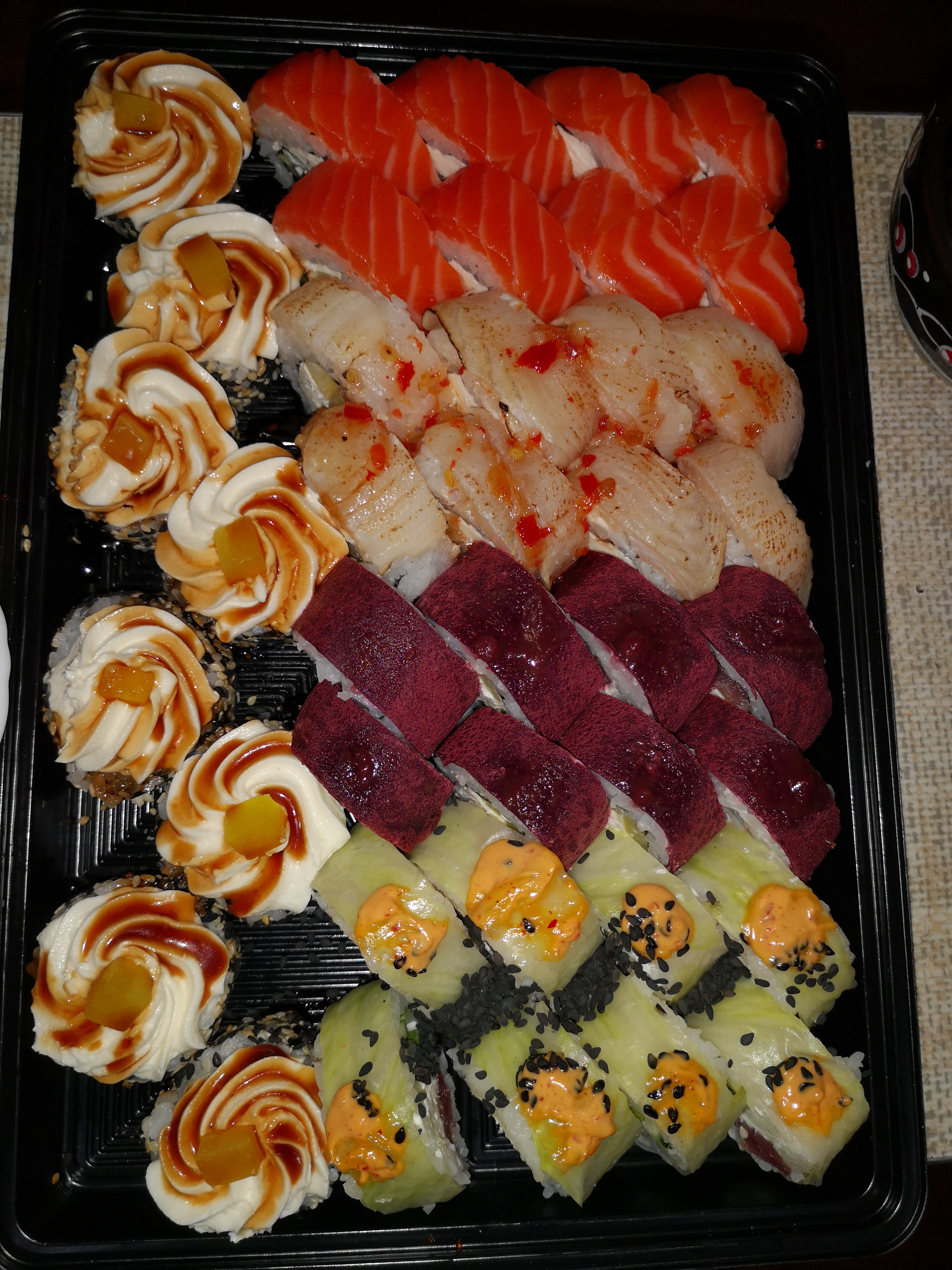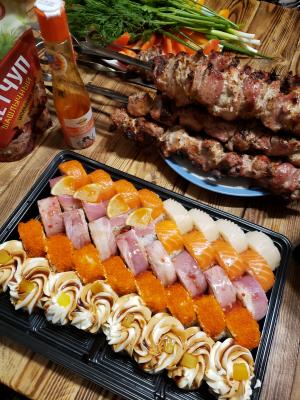 - Внимание! К предзаказу на 31.12 доступны: сет "Новогодний", "Мамины радости", "Макеба", "Ясахи", "Филадельфия", "Каприз", "Игра в кальмара", "Можно всё!", "Мама босс", "Палитра вкуса", "Муж купил", "Биг босс", "Мафия", "Манга", роллы Урамаки, все напитки и гарниры