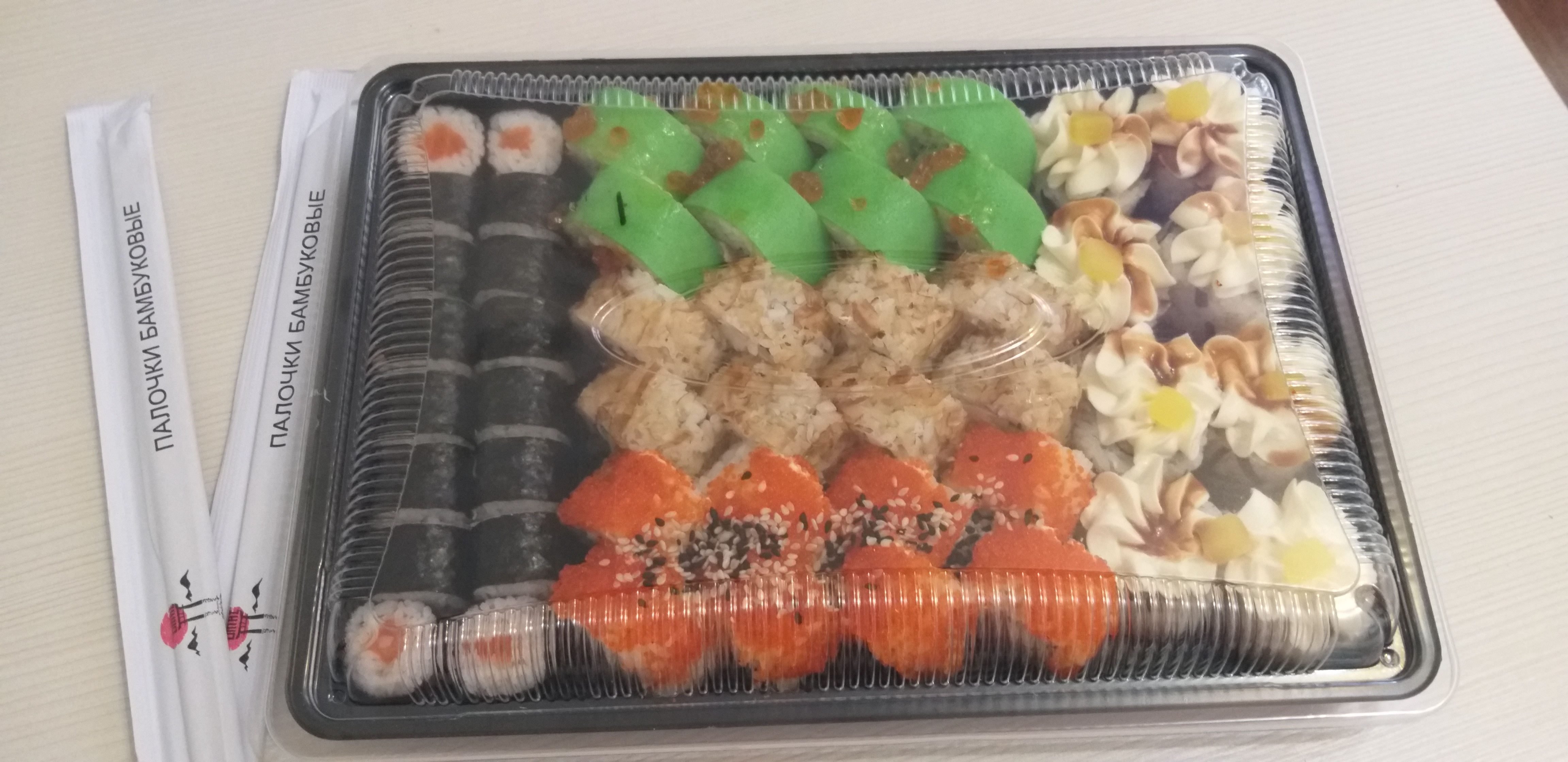 - На 1 суши-сет прилагается не более 4 комплектов палочек